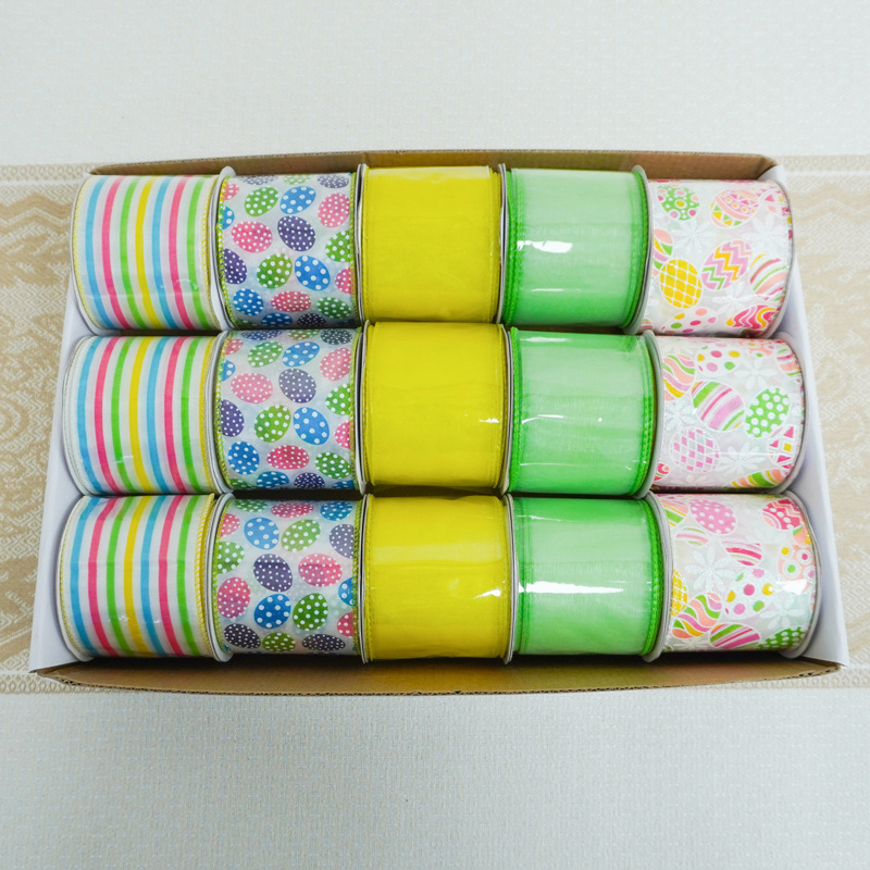 세누 리본 부활절 리본 흰색 토끼 패턴 리본 당근 패턴 부활절 장식 리본
