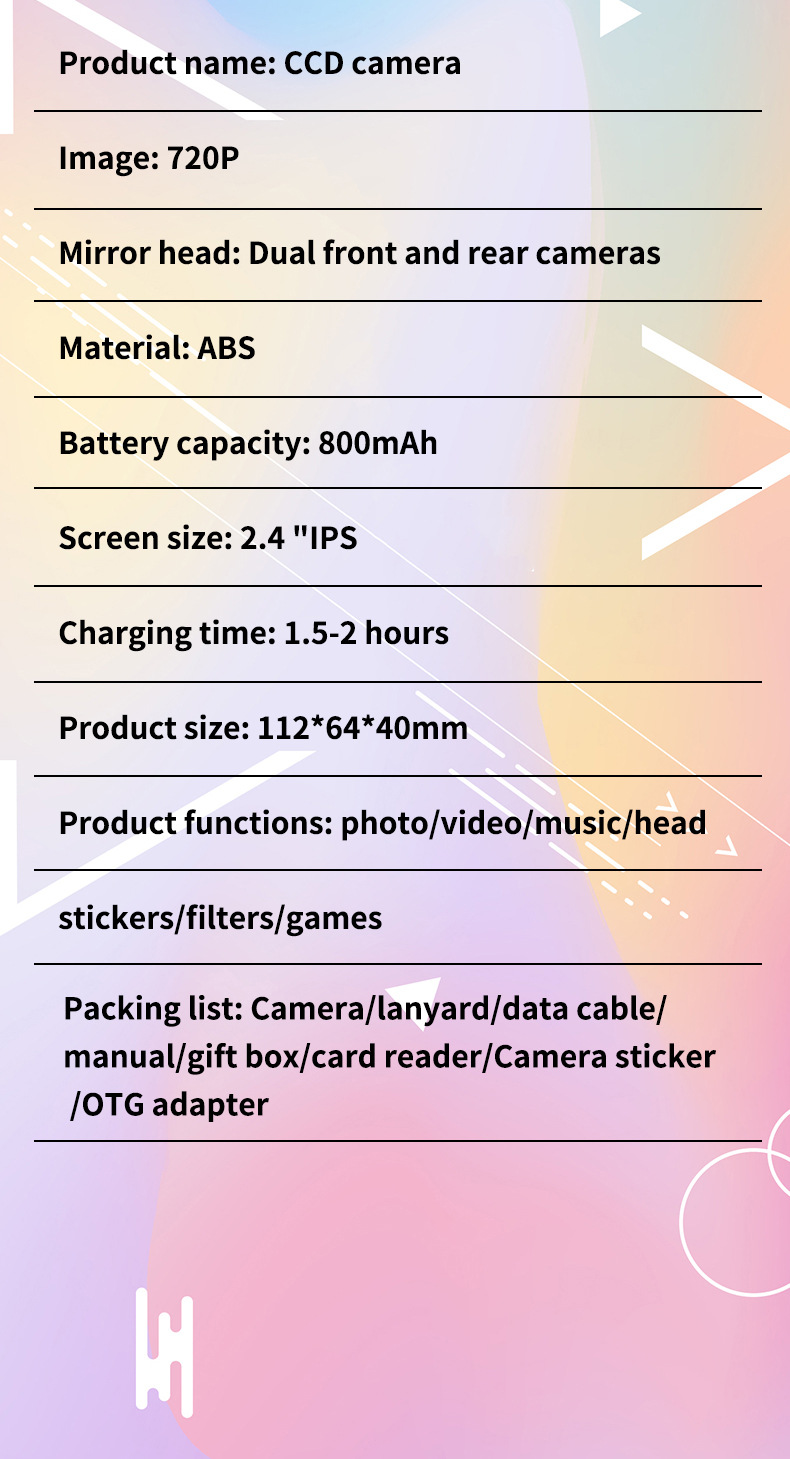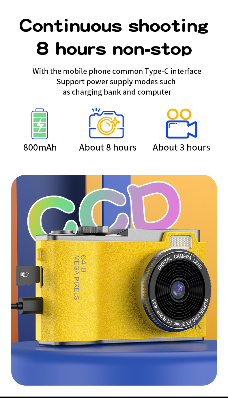 새로운 국경 CCD 카메라 어린이 디지털 카메라 미니 HD 촬영 녹화 카메라 학생 사진 창조적 인스토어 가기