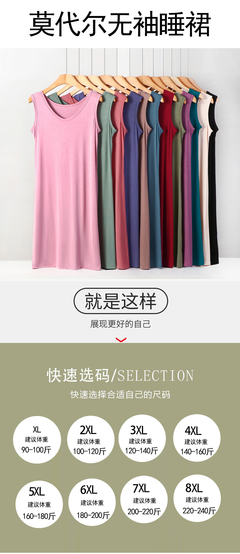 모달 조끼 잠옷 숙녀 잠옷 여름 플러스 사이즈 얇은 얼음 실크 민소매 긴 치마 지방 mm200 kg 원피스스토어 가기
