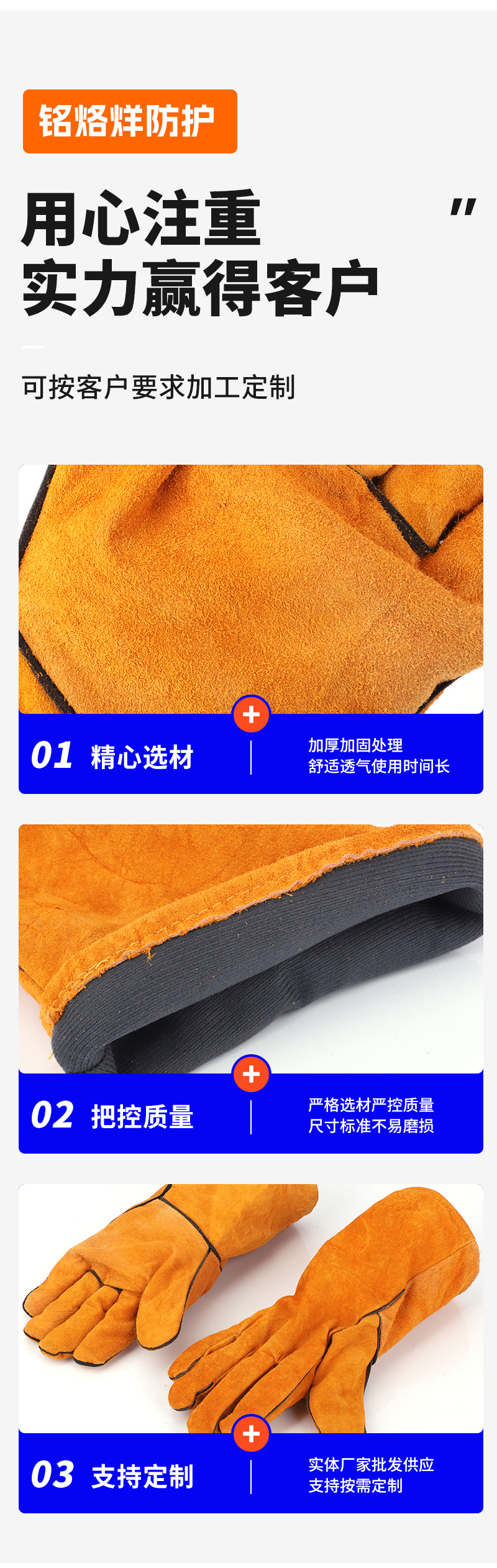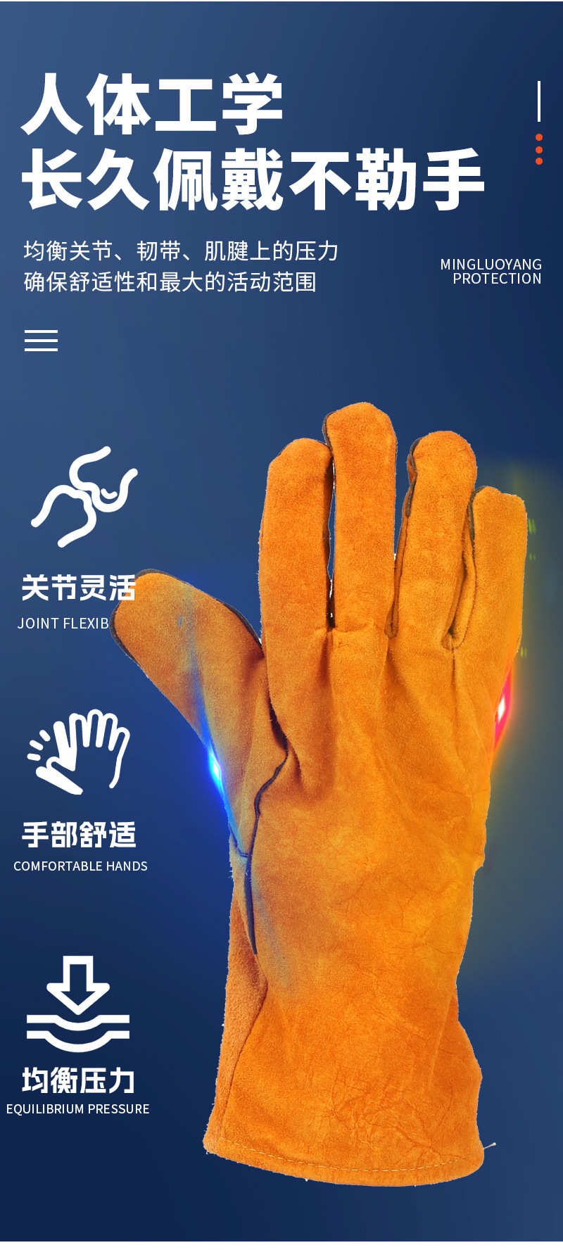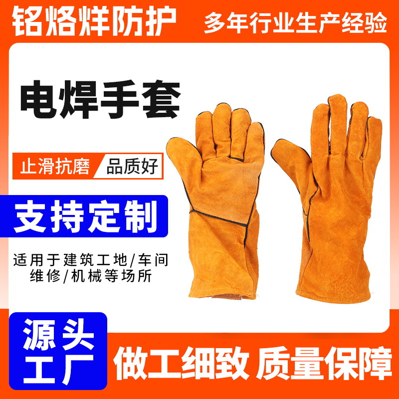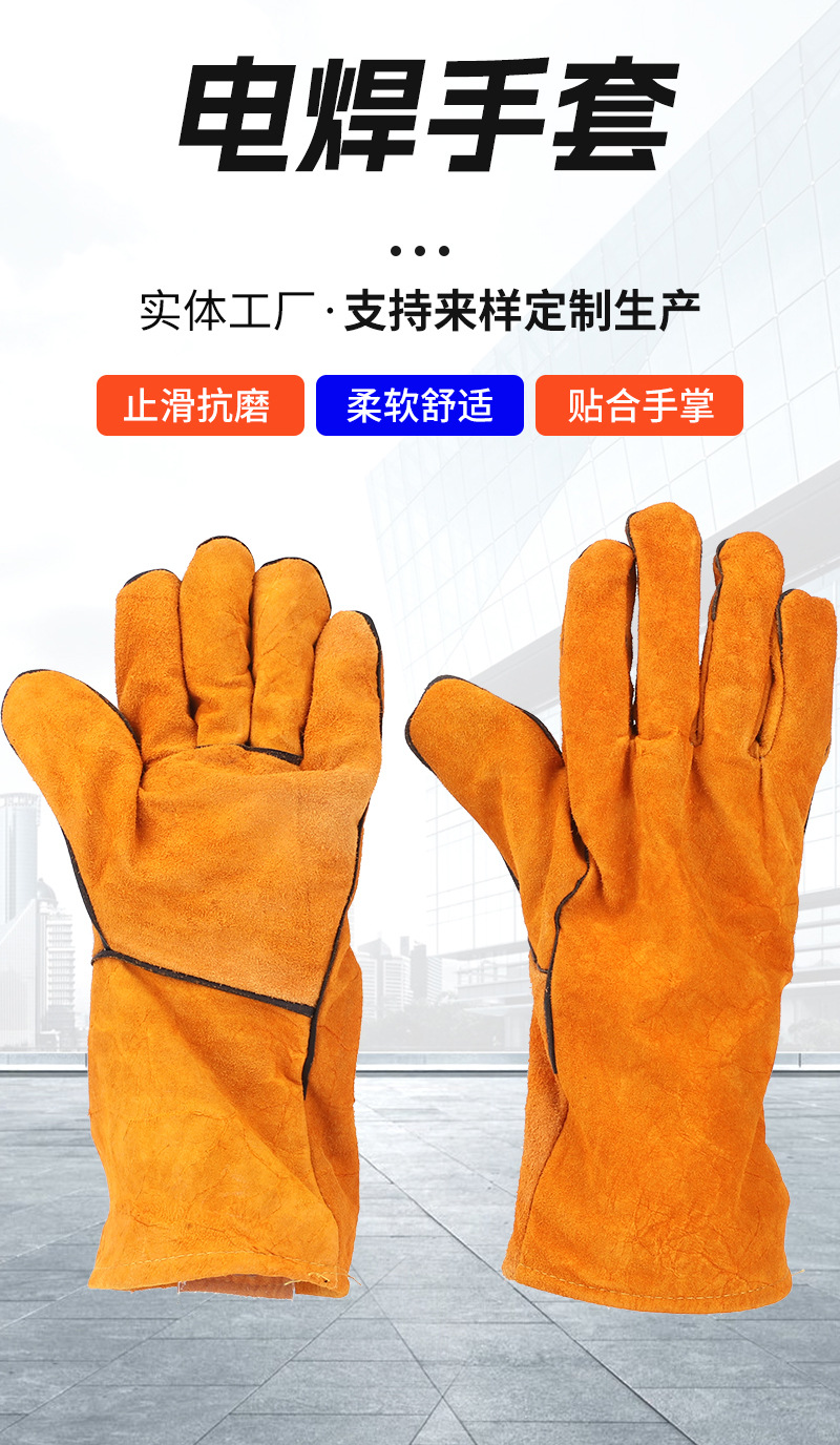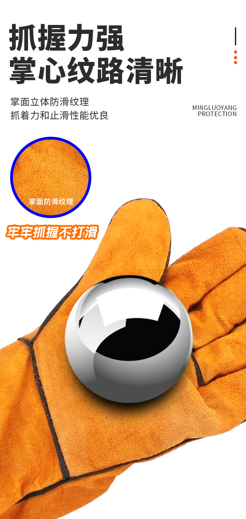 용접용 노란색 소가죽 산업용 장갑, 용접공용 내마모성, 미끄럼 방지, 불꽃 방지, 용접용 두꺼운 안전 작업 장갑