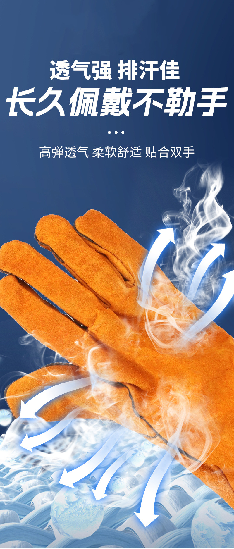 용접용 노란색 소가죽 산업용 장갑, 용접공용 내마모성, 미끄럼 방지, 불꽃 방지, 용접용 두꺼운 안전 작업 장갑스토어 가기