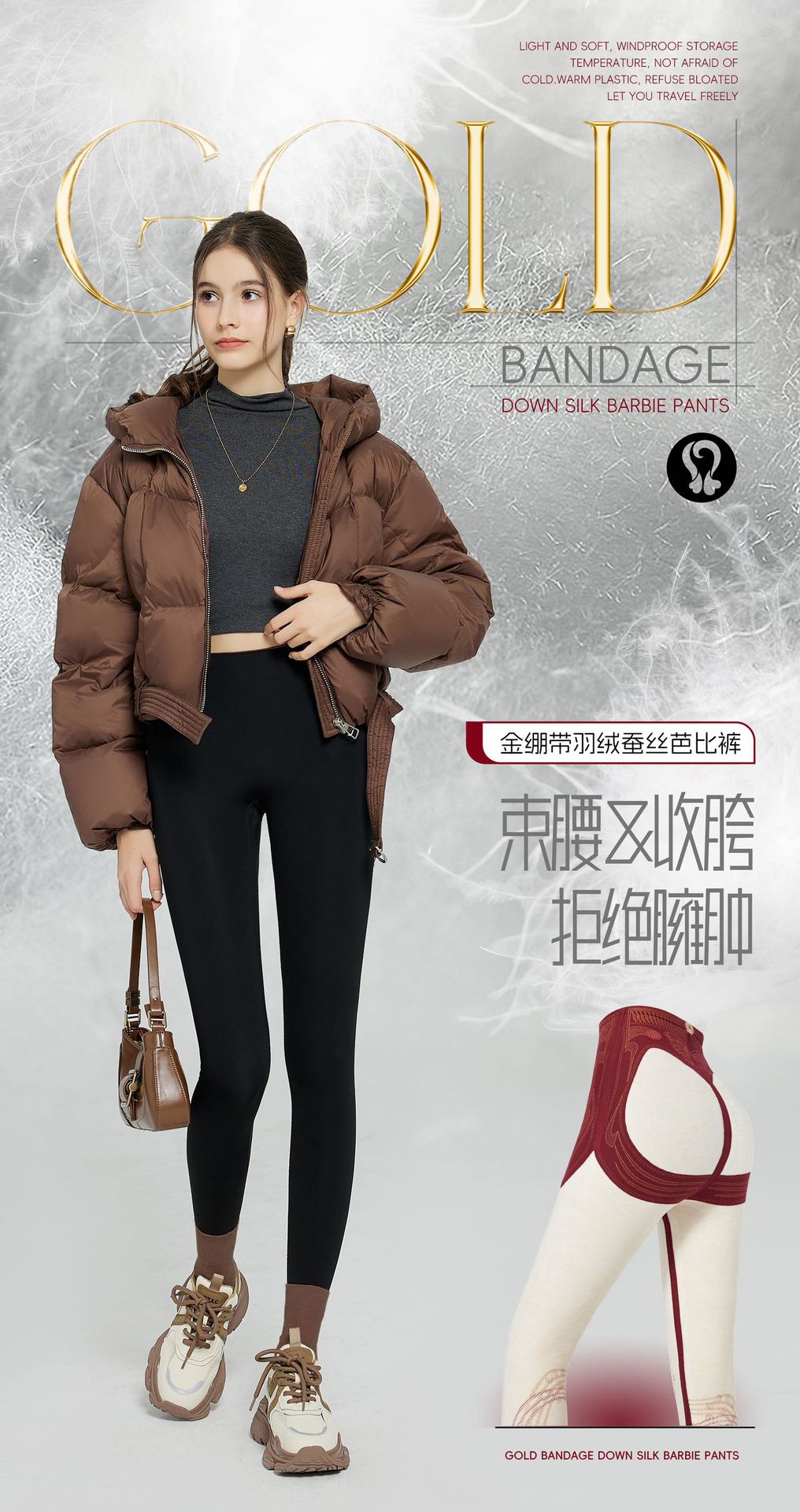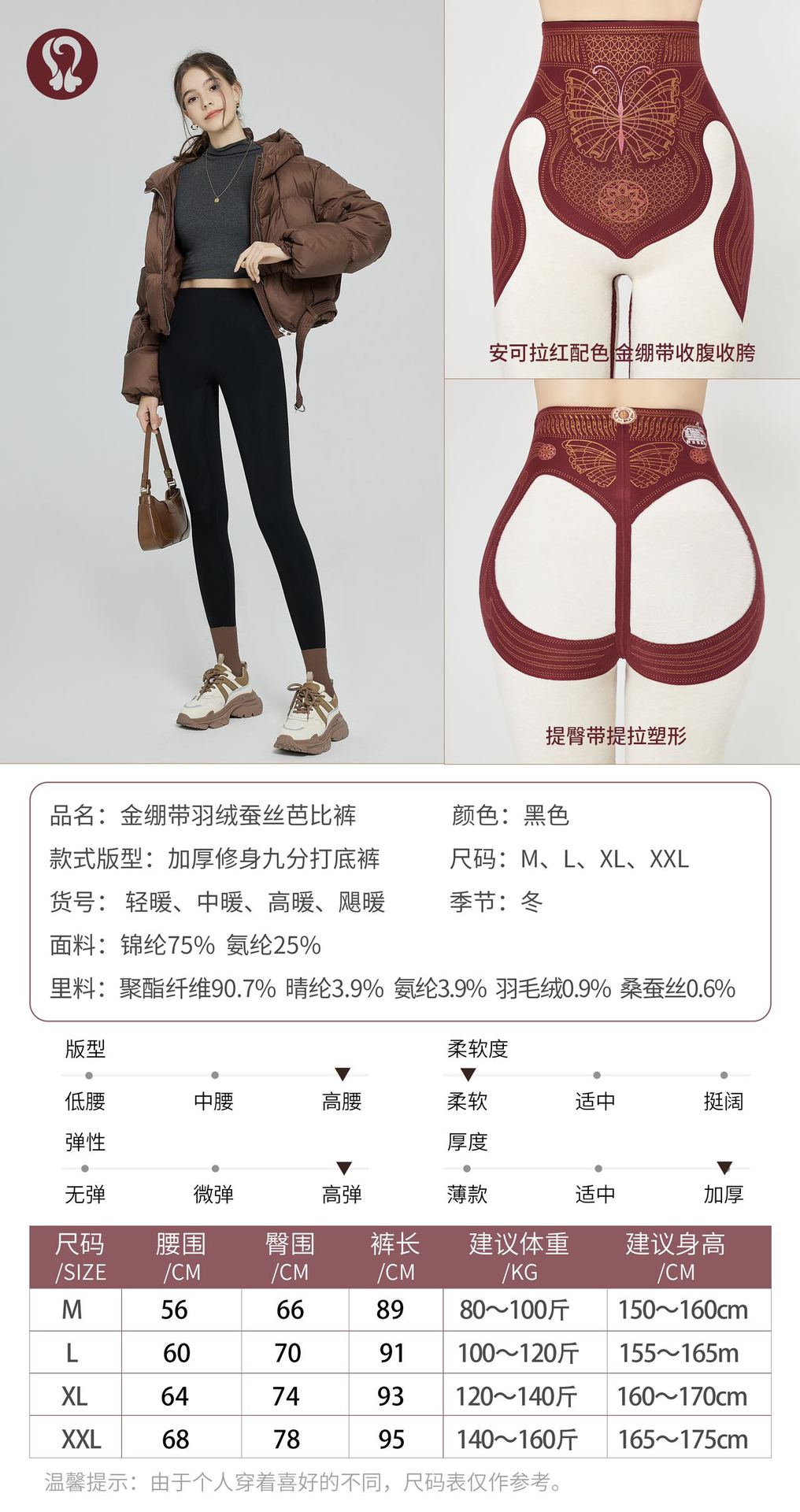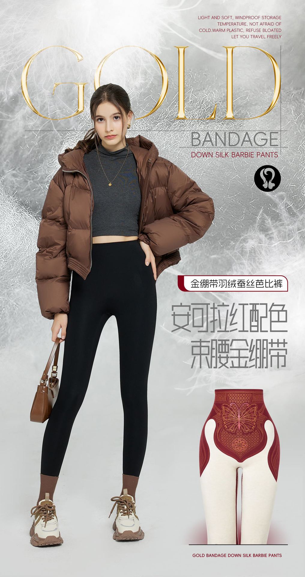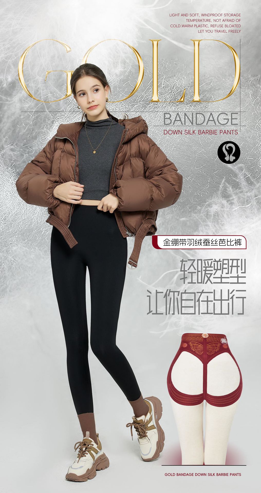 골드 밴디지 다운 실크 바비 팬츠 핫 엘리먼트 겨울 신작 9부 서스펜션 팬츠 플러스 벨벳 여성용 따뜻한 레깅스스토어 가기