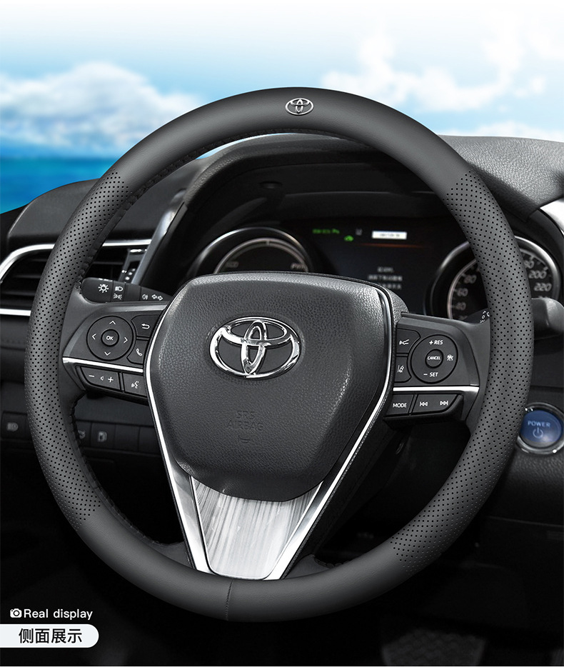 도요타 Leiling 더블 엔진 스티어링 휠 커버 가죽 사계절 유니버설 초박형 자동차 핸들 박스 인테리어 액세서리 수정을 위해 적당한스토어 가기