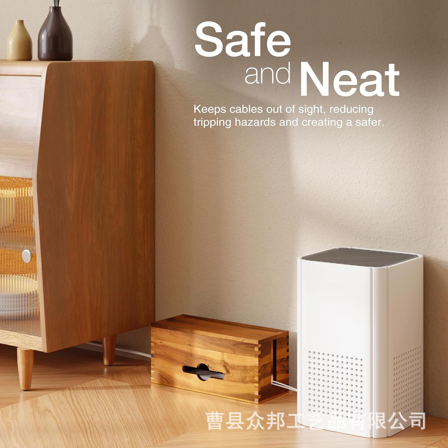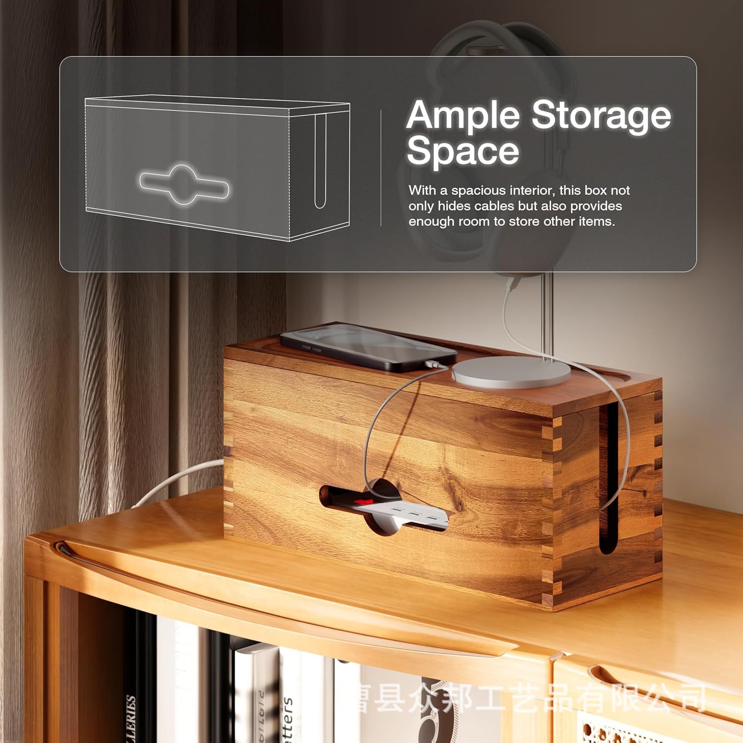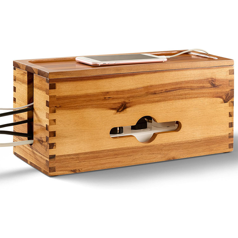 아카시아 목재 케이블 관리 상자 데스크탑 와이어 패치 컨실러 침대 옆 테이블 충전기 데이터 케이블 저장 상자