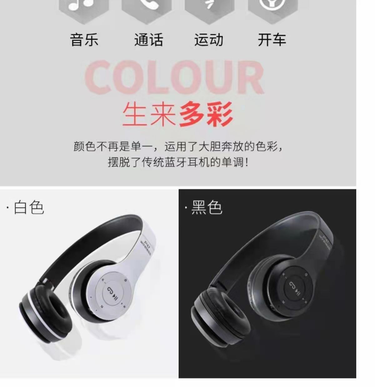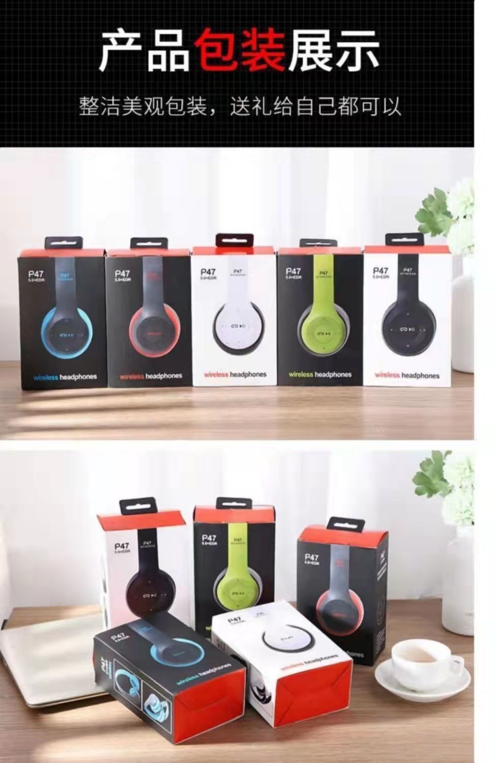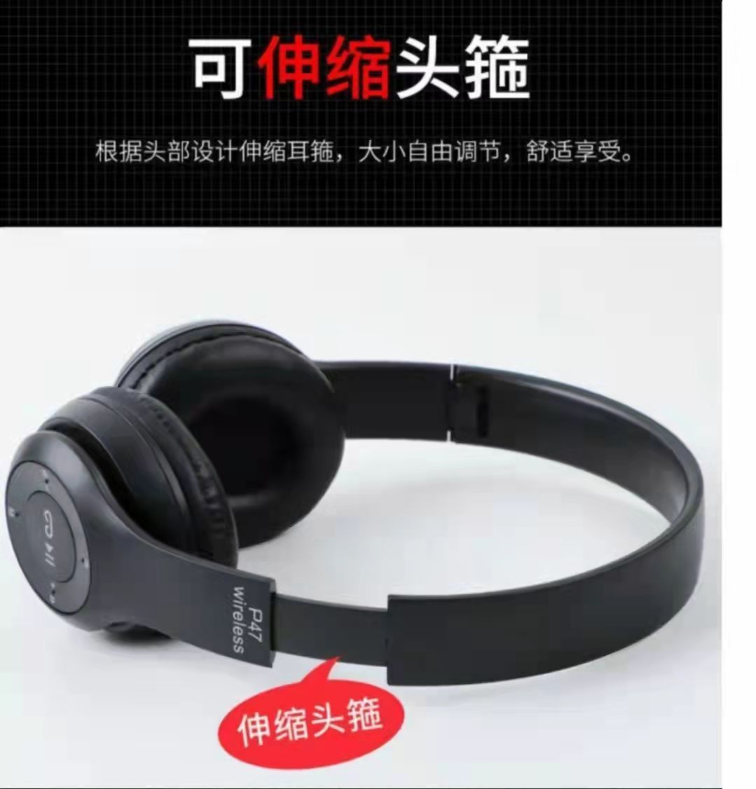 국경 간 스테레오 P47 헤드셋 5.0 블루투스 헤드셋 접이식 P 시리즈 무선 스포츠 게임 헤드셋 도매