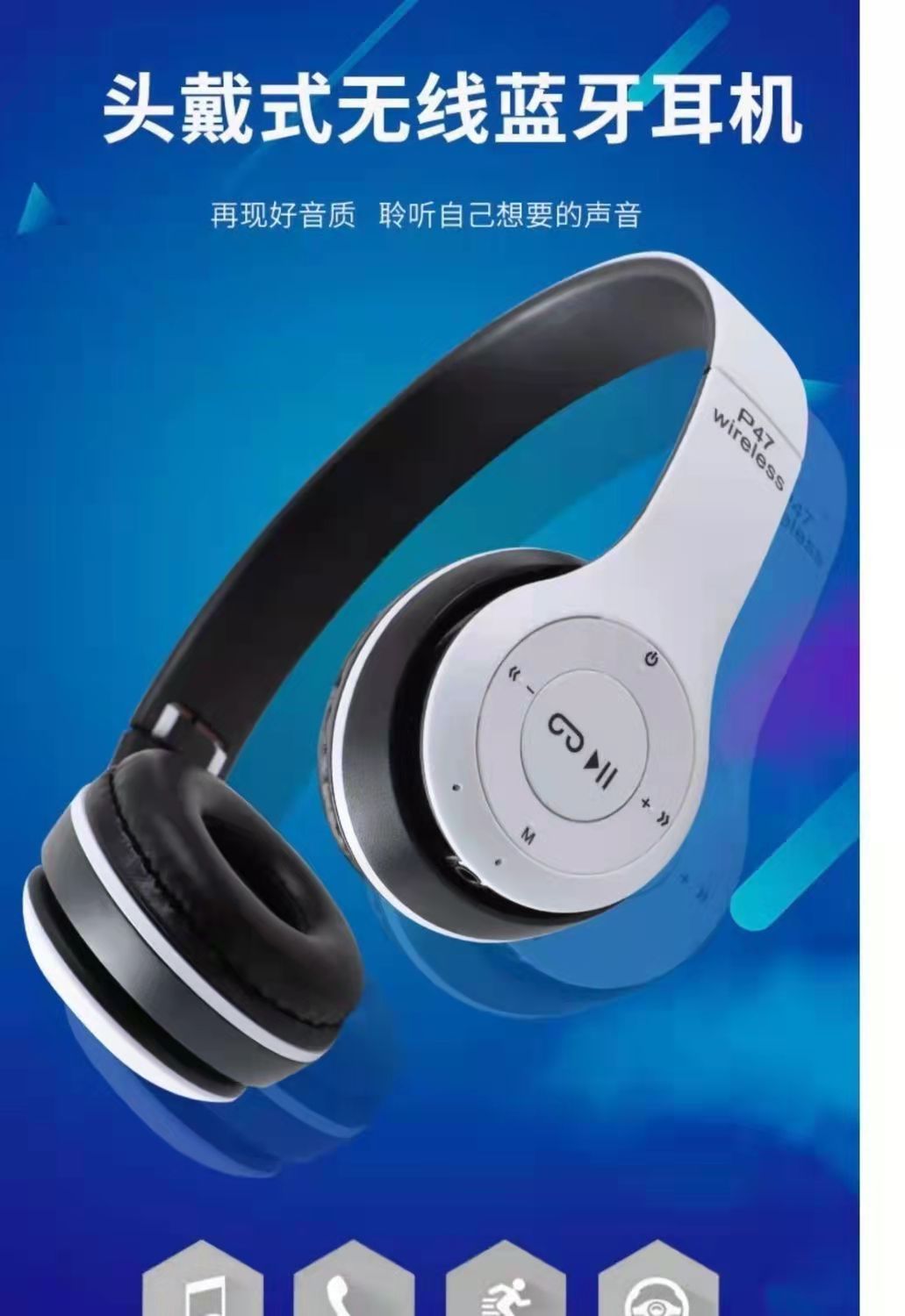 국경 간 스테레오 P47 헤드셋 5.0 블루투스 헤드셋 접이식 P 시리즈 무선 스포츠 게임 헤드셋 도매스토어 가기