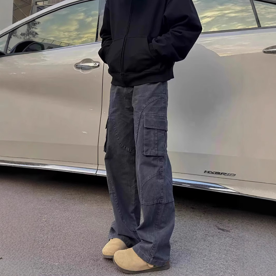 Y2K 아메리칸 레트로 멀티 포켓 오버홀 여성 남성 2024 가을 패션 브랜드 느슨한 클랜핏 스트레이트 청바지