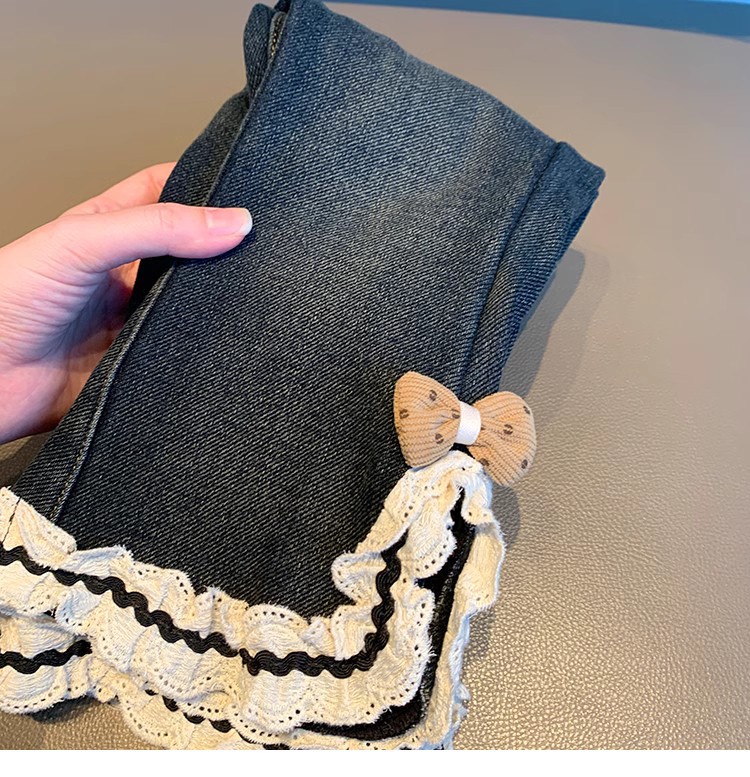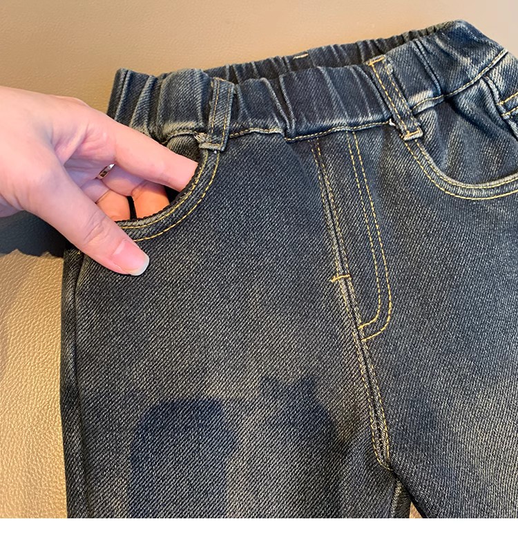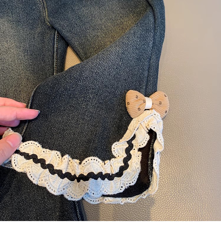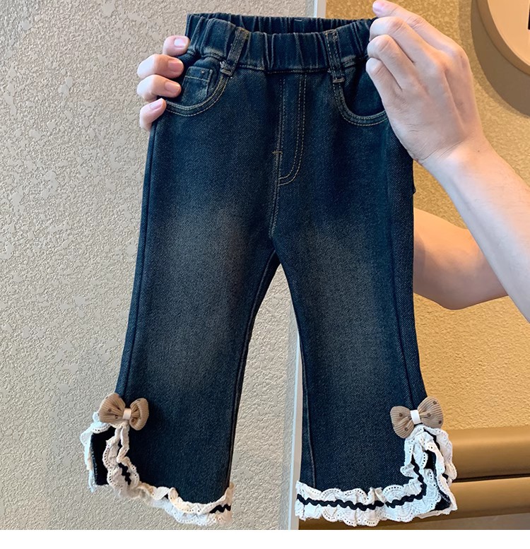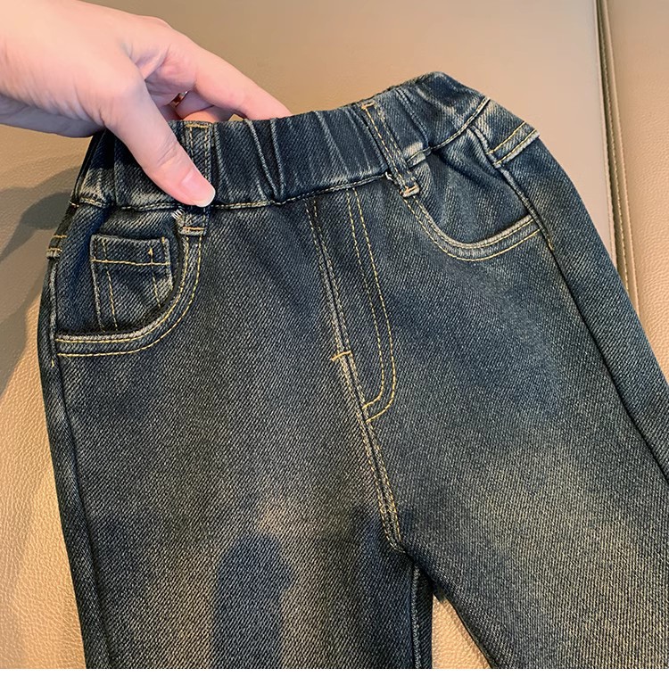 어린 여아용 플러스 사이즈 데님 플레어 팬츠 2025년 신상 겨울 아기 소녀용 일체형 플러스 사이즈 데님 팬츠 스타일리시스토어 가기