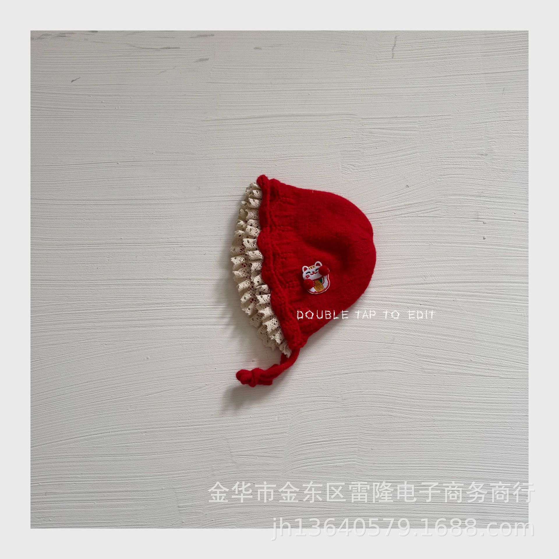 아기의 가을과 겨울 새해 슈퍼 귀여운 축제 어린이 니트 울 모자 스카프 두 조각 세트 귀 보호 모자 아기 소년과 소녀를위한스토어 가기