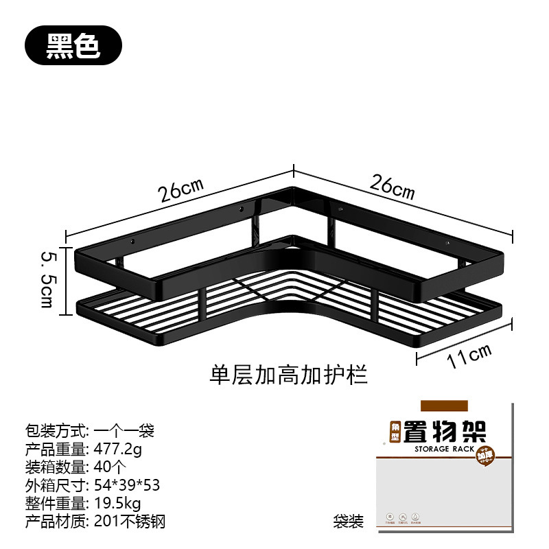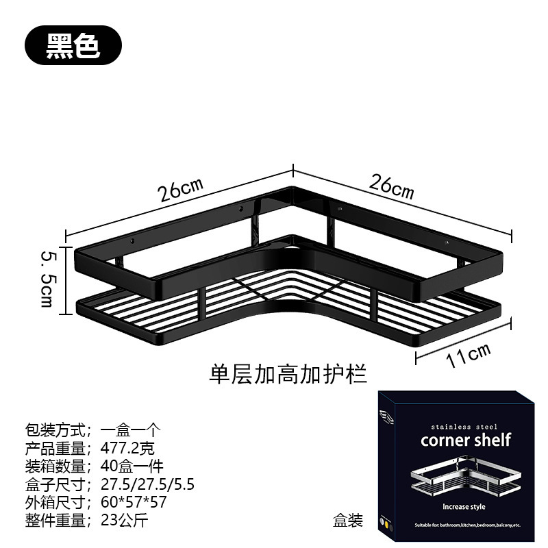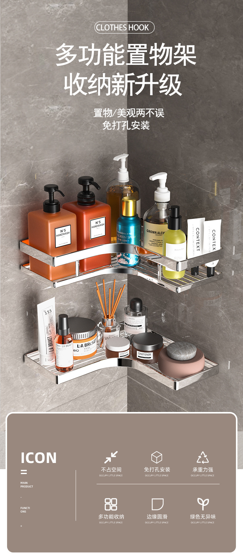 욕실용 펀치 없는 크로스보더 수납선반, 두꺼운 플랫바 삼각대, 욕실 코너 수납선반, 걸이식 주방 코너선반