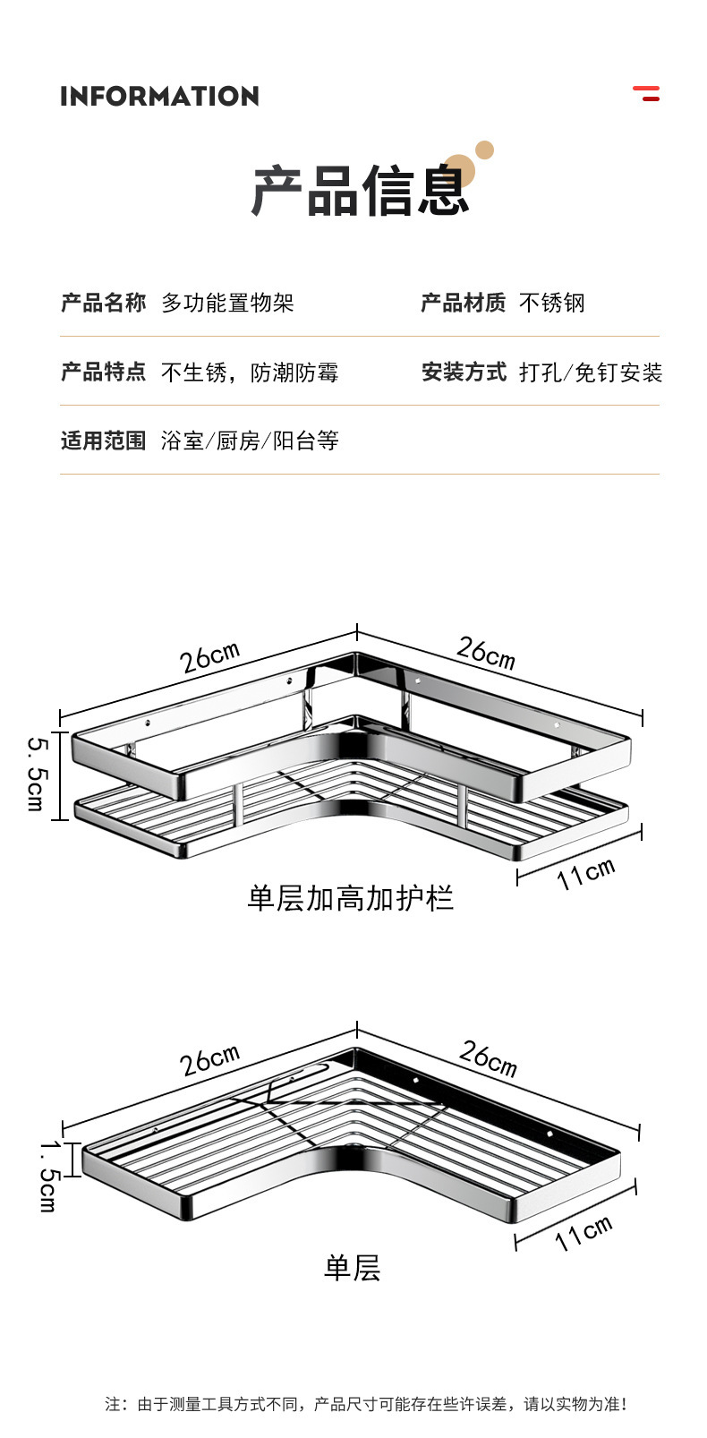 욕실용 펀치 없는 크로스보더 수납선반, 두꺼운 플랫바 삼각대, 욕실 코너 수납선반, 걸이식 주방 코너선반스토어 가기