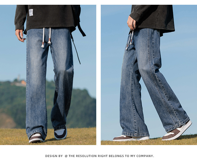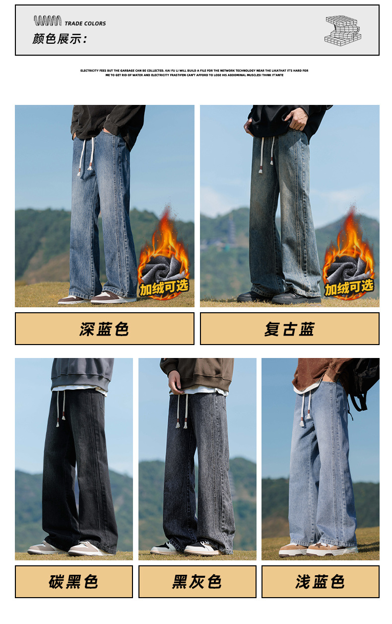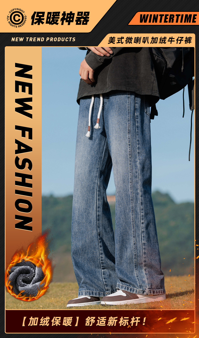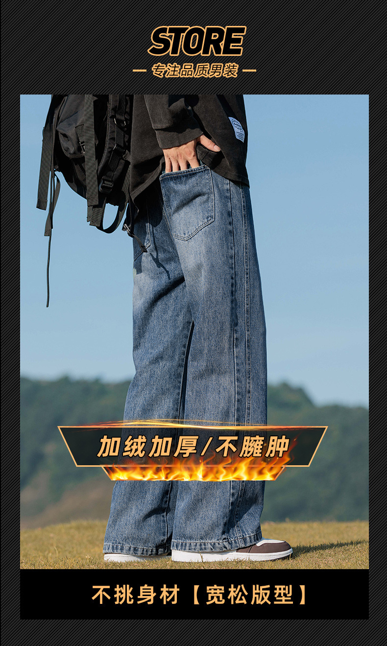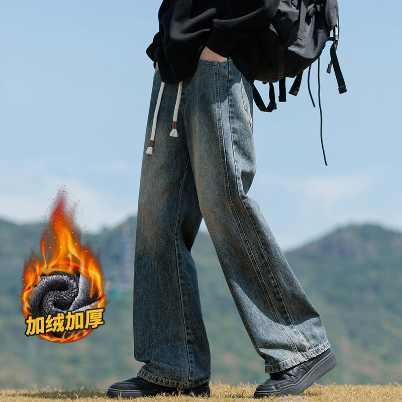 안양 기모 두꺼운 스트레이트 청바지 남성용 겨울 아메리칸 스타일 하이 스트리트 따뜻한 바지 남성용 트렌디 브랜드 루즈 바지