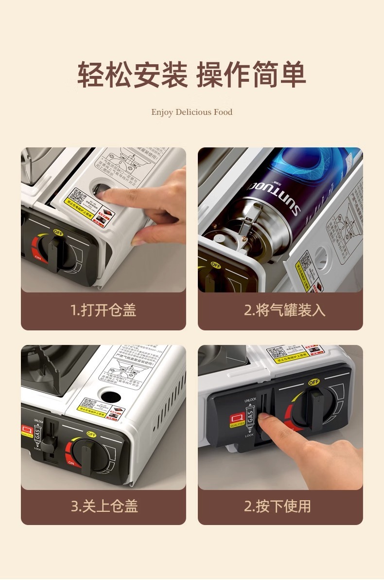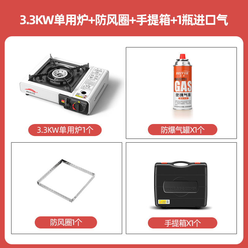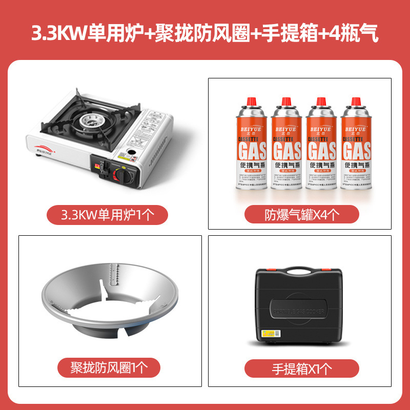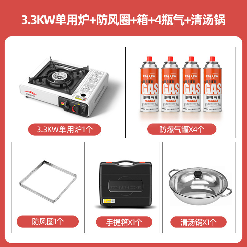 • 안전방폭로 + 방풍링 + 상자 + 맑은 국물냄비 + 가스 4개