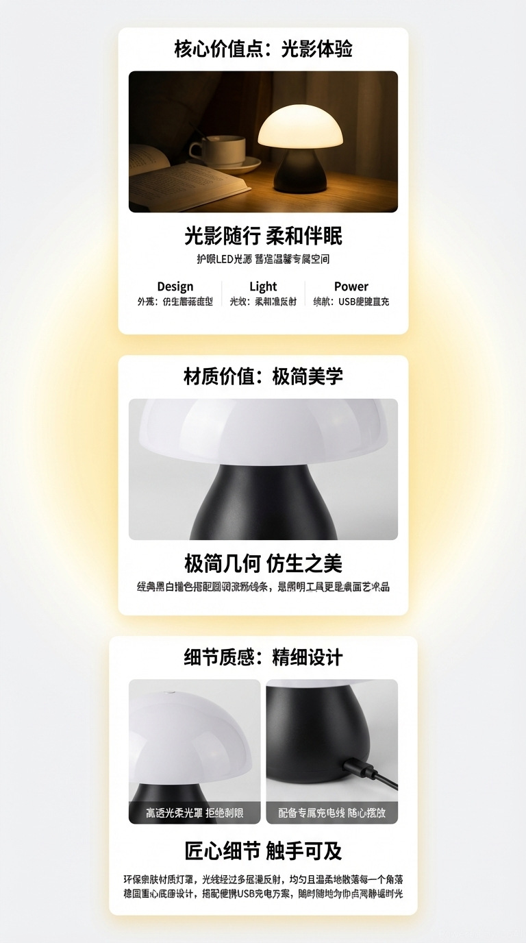 창조적 인 밤 빛 버섯 램프 테이블 램프 패팅 램프 침실 침대 옆 램프 식탁 바 램프 따뜻한 흰색 빛 분위기 램프