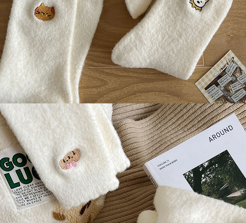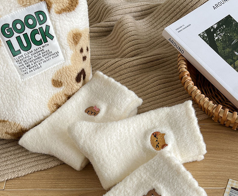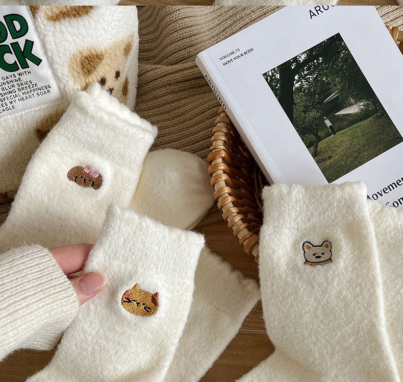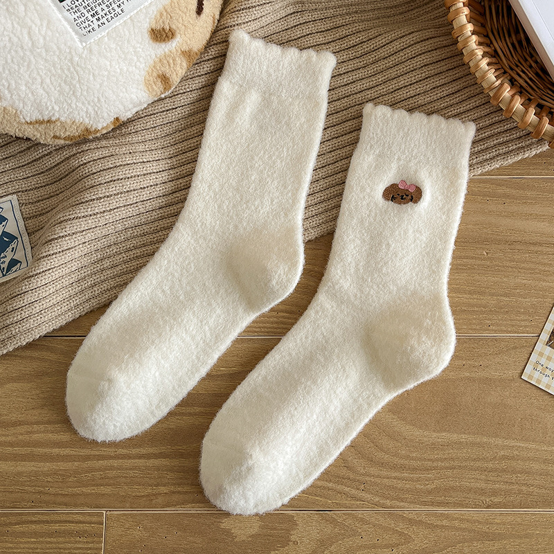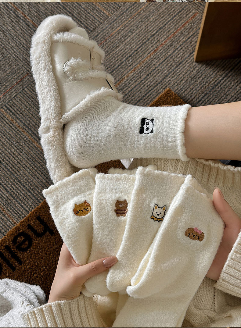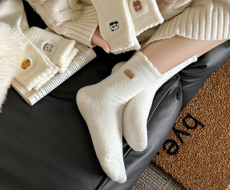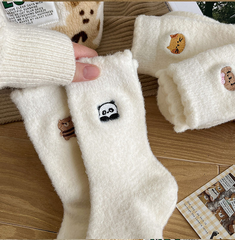 겨울 호주 벨벳 두꺼운 귀여운 만화 자수 레이스 양말 편안한 따뜻한 학업 스타일 바닥 양말 수면 양말
