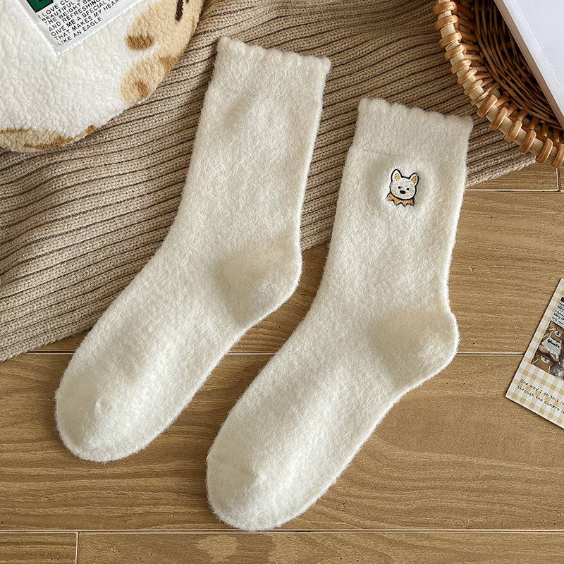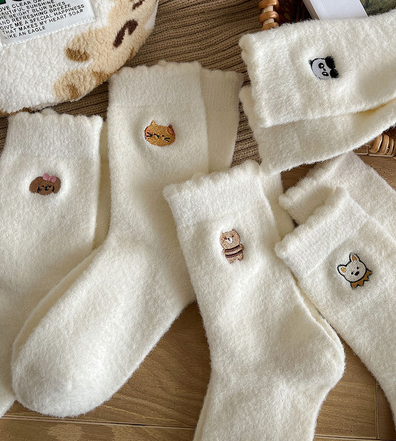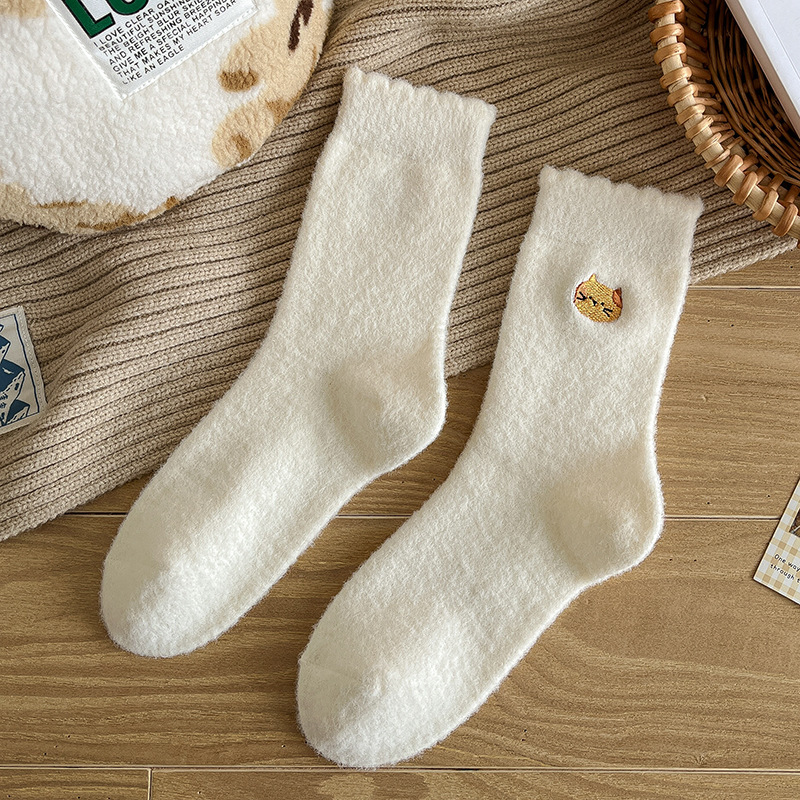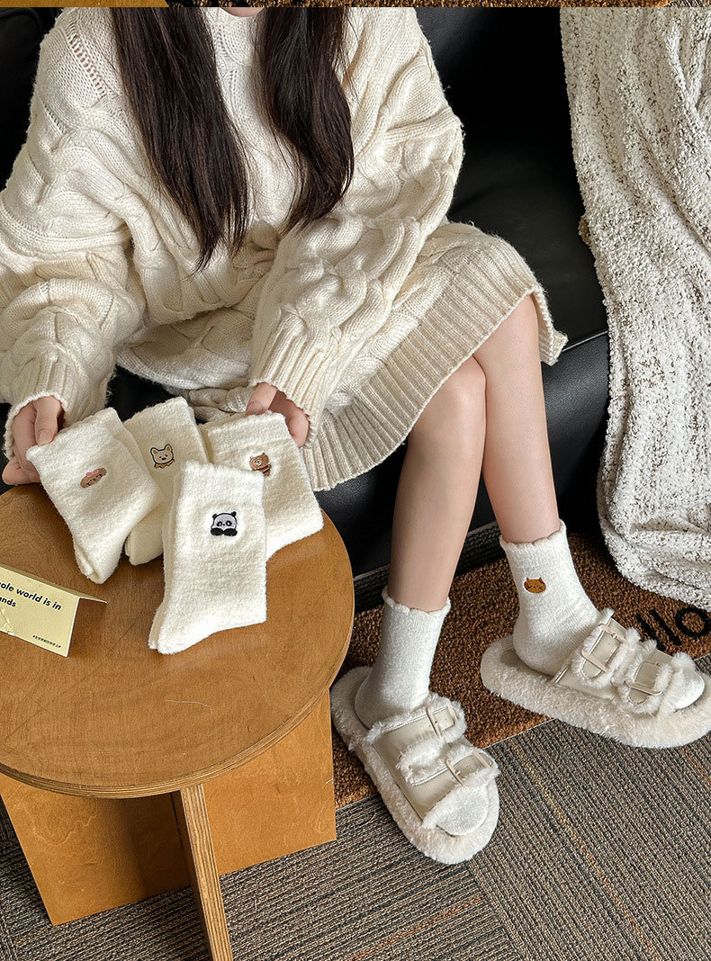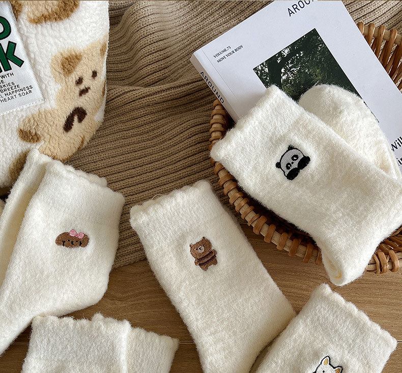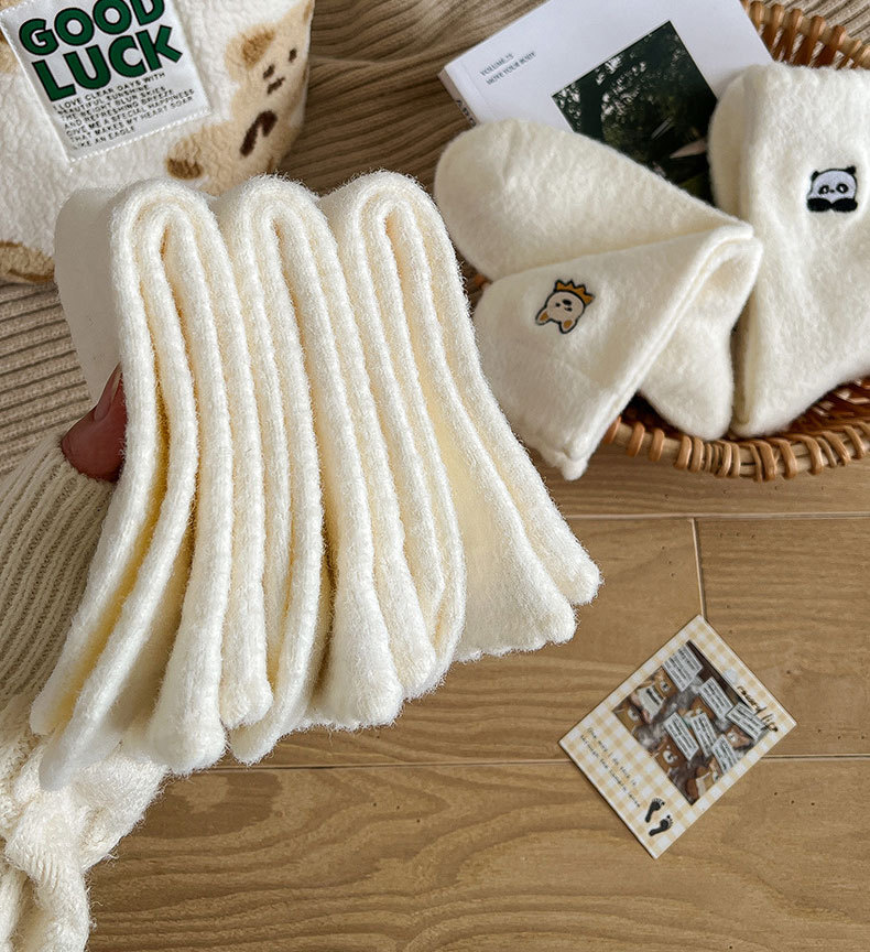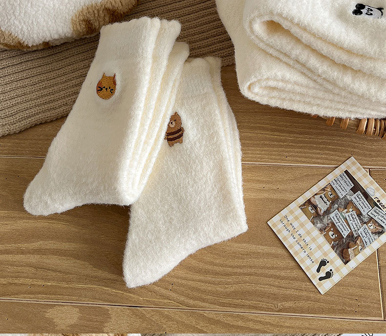 겨울 호주 벨벳 두꺼운 귀여운 만화 자수 레이스 양말 편안한 따뜻한 학업 스타일 바닥 양말 수면 양말