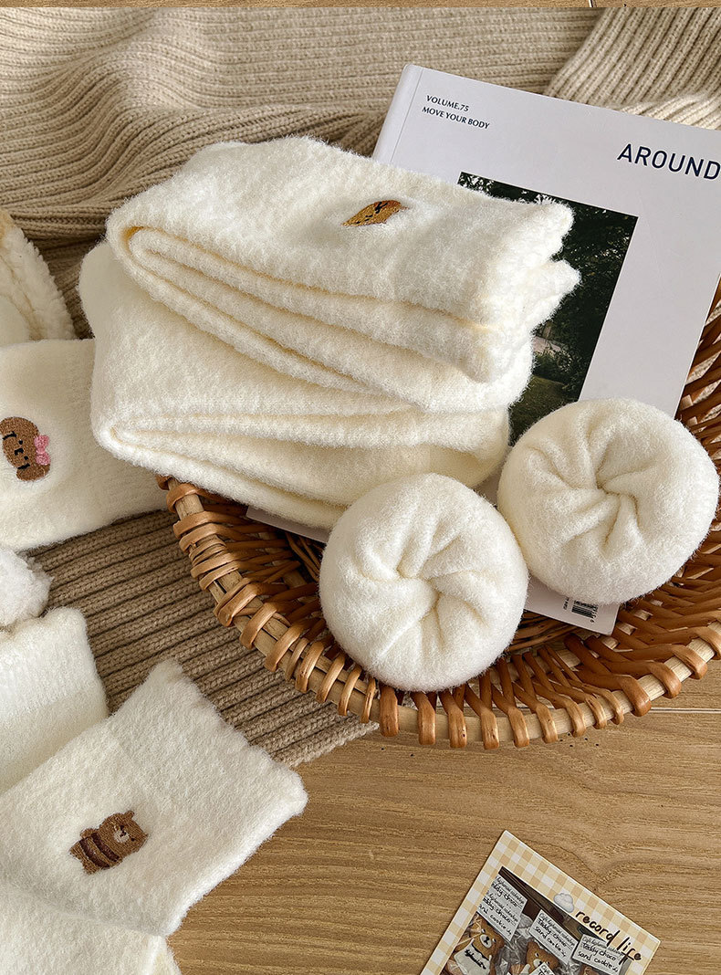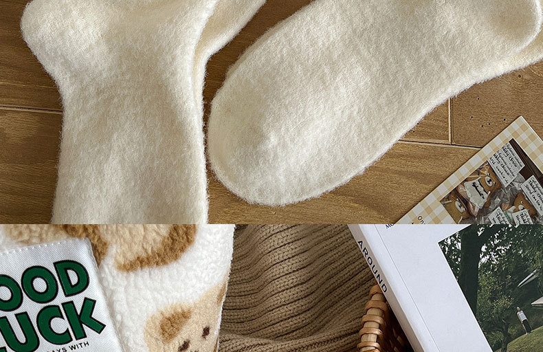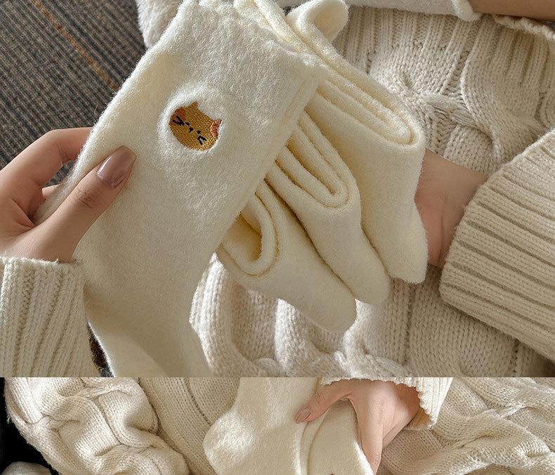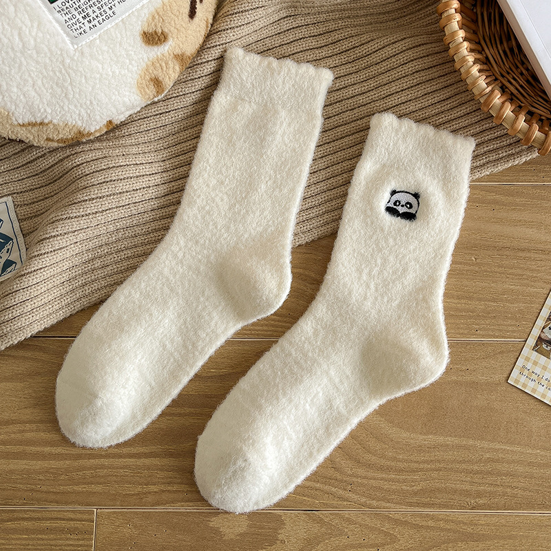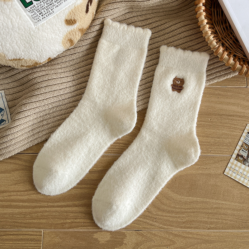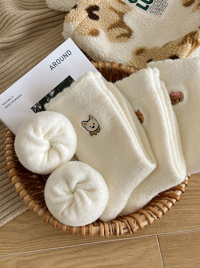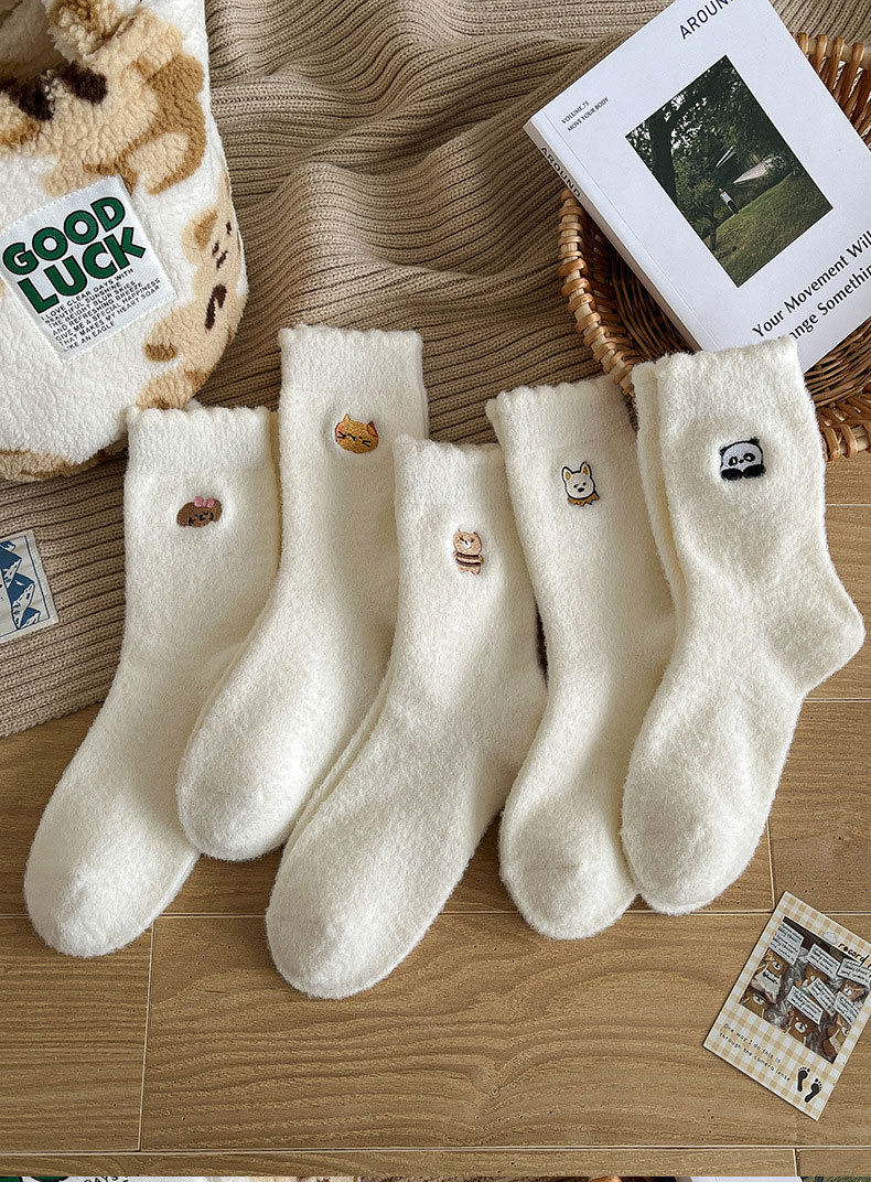 겨울 호주 벨벳 두꺼운 귀여운 만화 자수 레이스 양말 편안한 따뜻한 학업 스타일 바닥 양말 수면 양말
