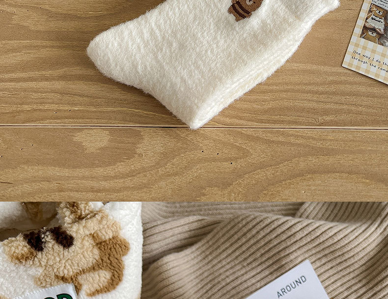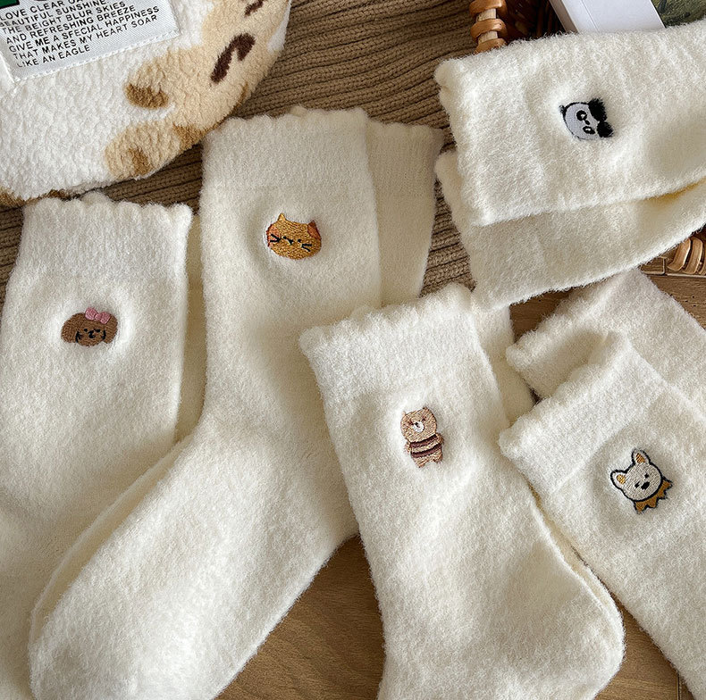 겨울 호주 벨벳 두꺼운 귀여운 만화 자수 레이스 양말 편안한 따뜻한 학업 스타일 바닥 양말 수면 양말스토어 가기