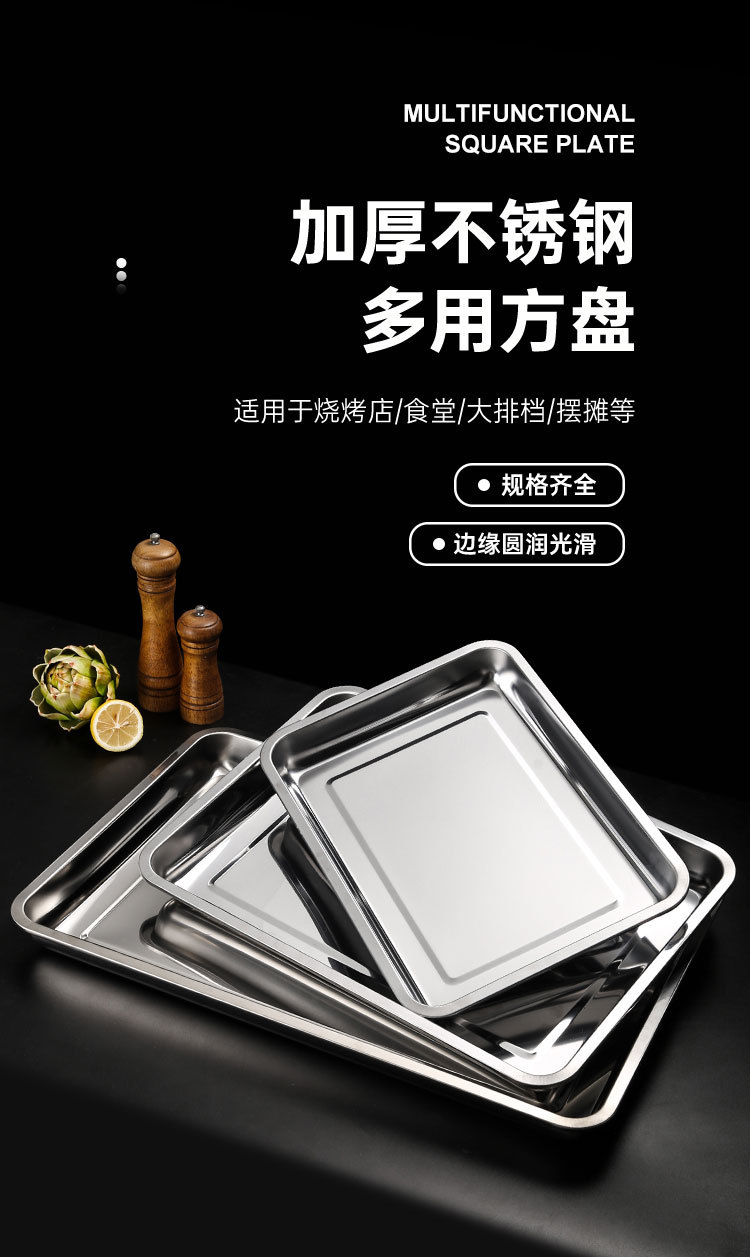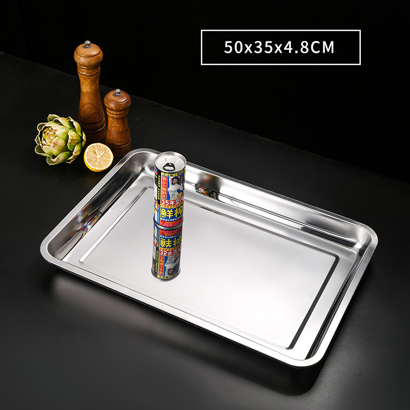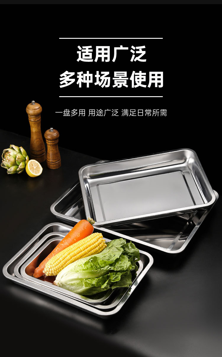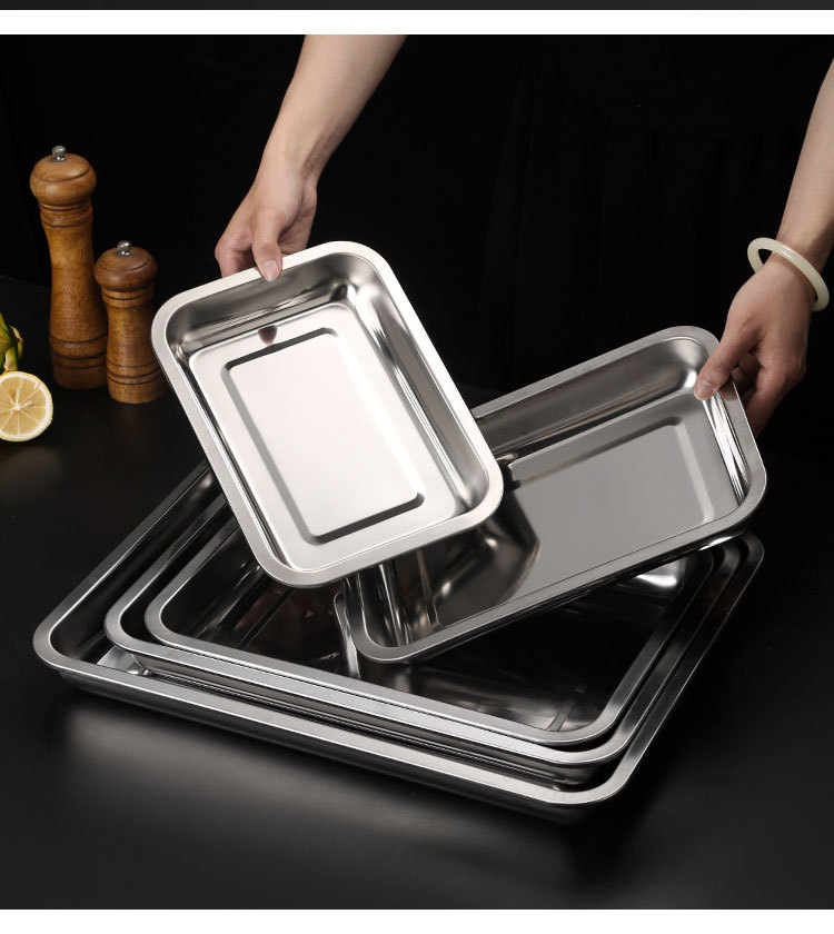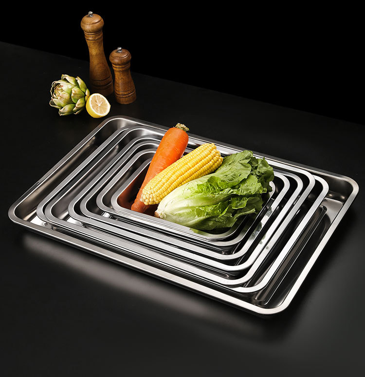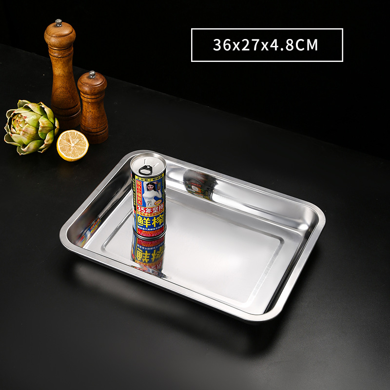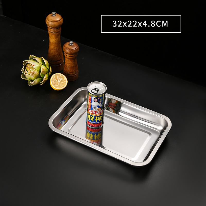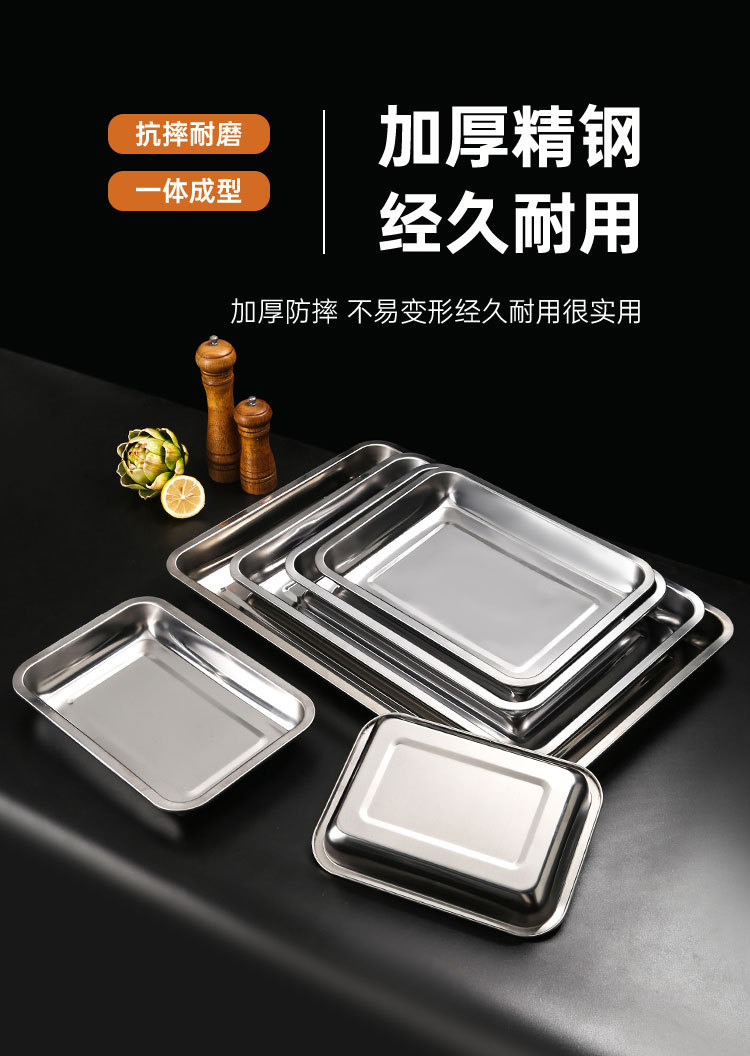 스테인레스 스틸 디너 접시 트레이, 사각 접시, 생선구이 접시, 식당 찜기 쌀 접시, 두꺼운 직사각형 만두 접시, 가정용스토어 가기