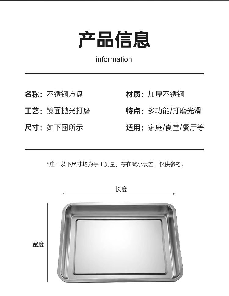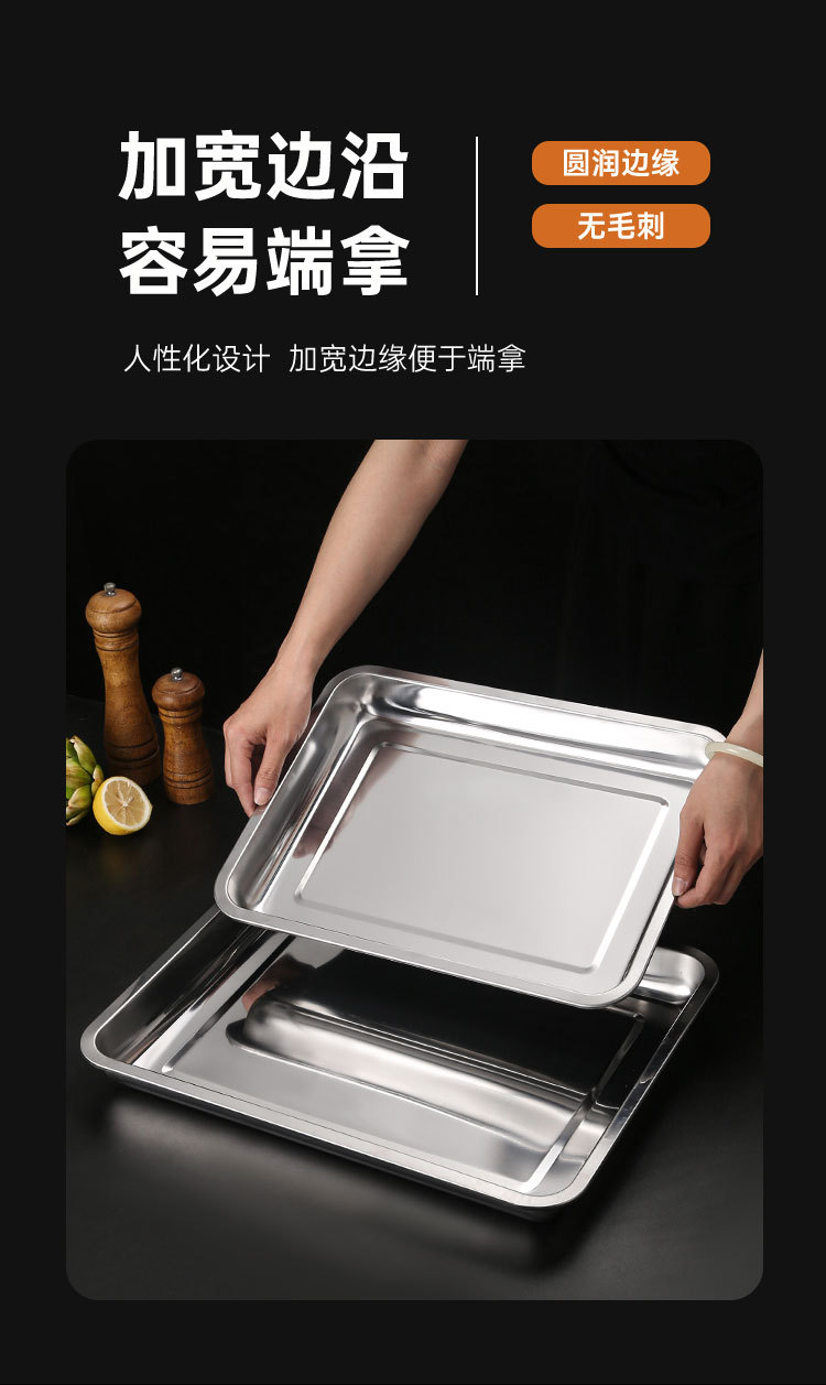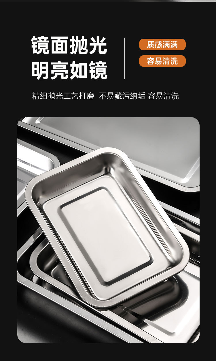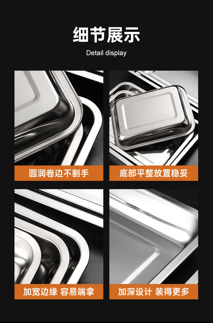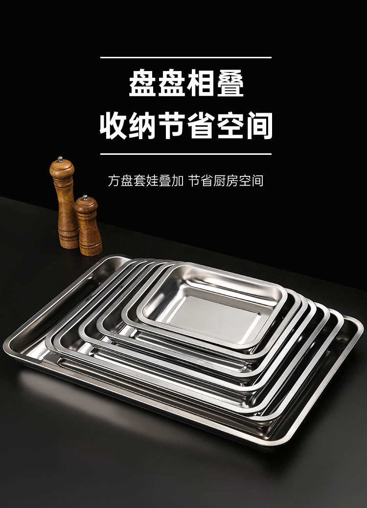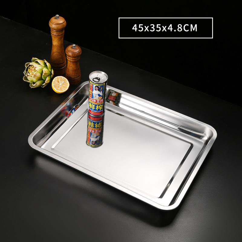 스테인레스 스틸 디너 접시 트레이, 사각 접시, 생선구이 접시, 식당 찜기 쌀 접시, 두꺼운 직사각형 만두 접시, 가정용스토어 가기