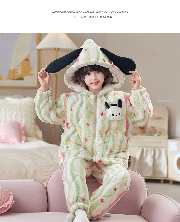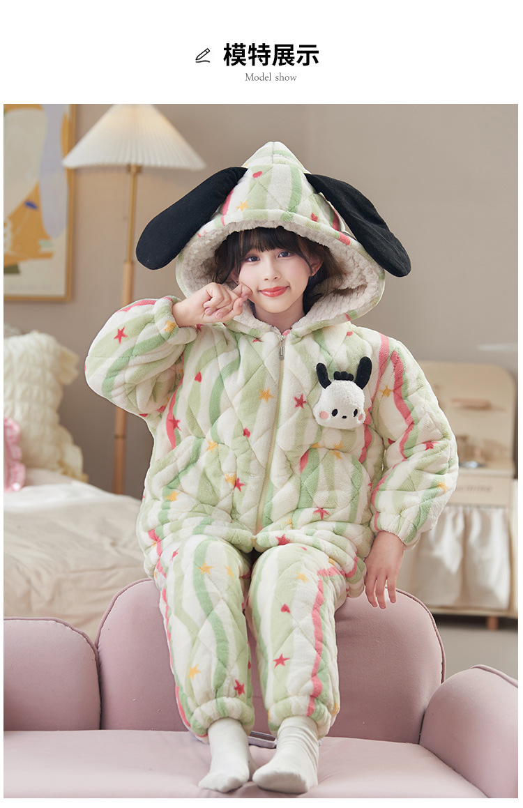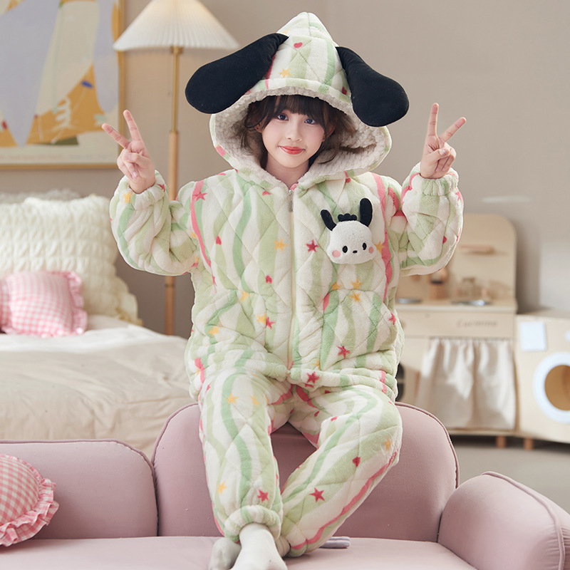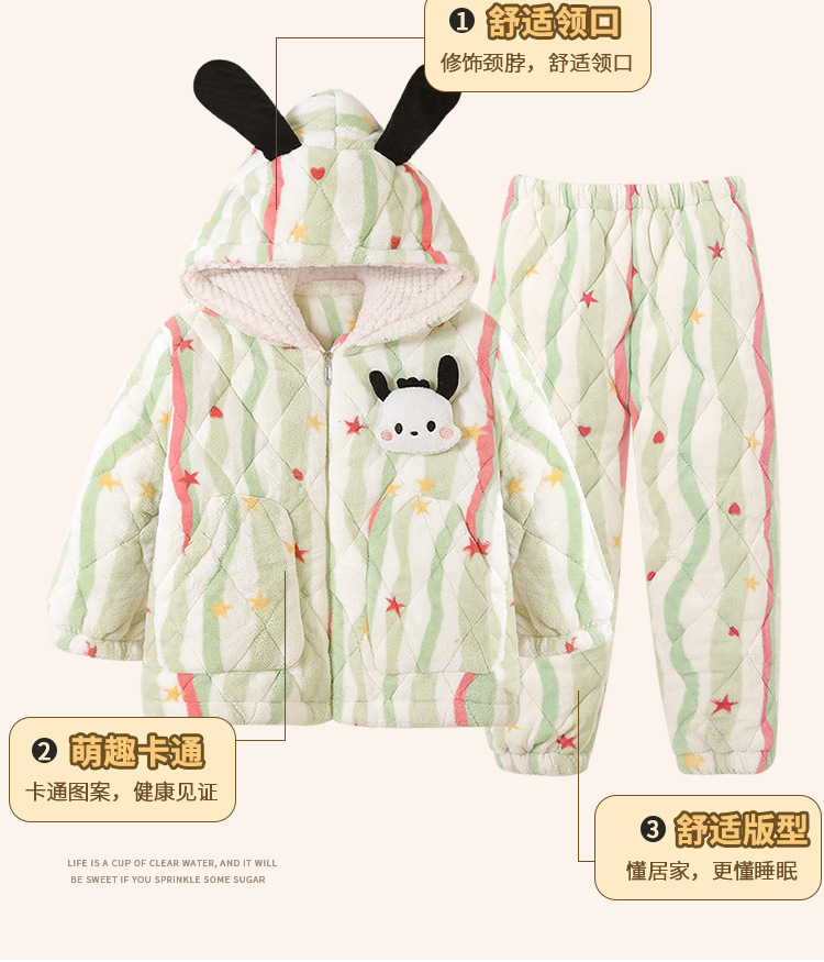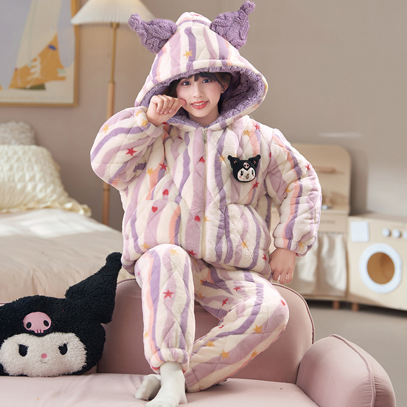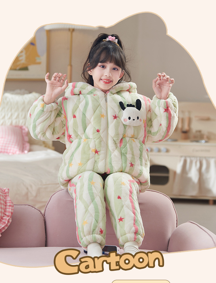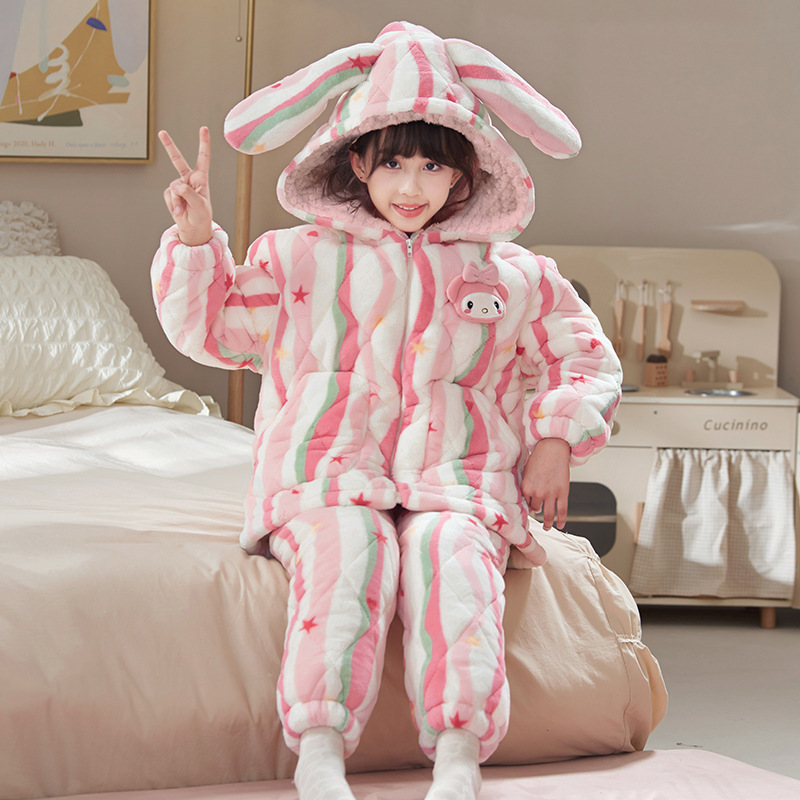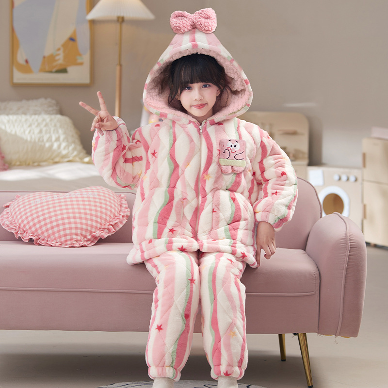 새로운 가을, 겨울 소녀 잠옷 3 층 퀼트 두꺼운 벨벳 어린이 어린 소녀 산호 벨벳 겨울 가정 의류