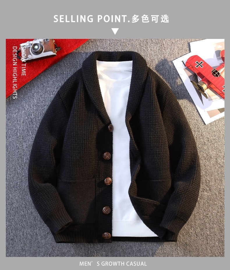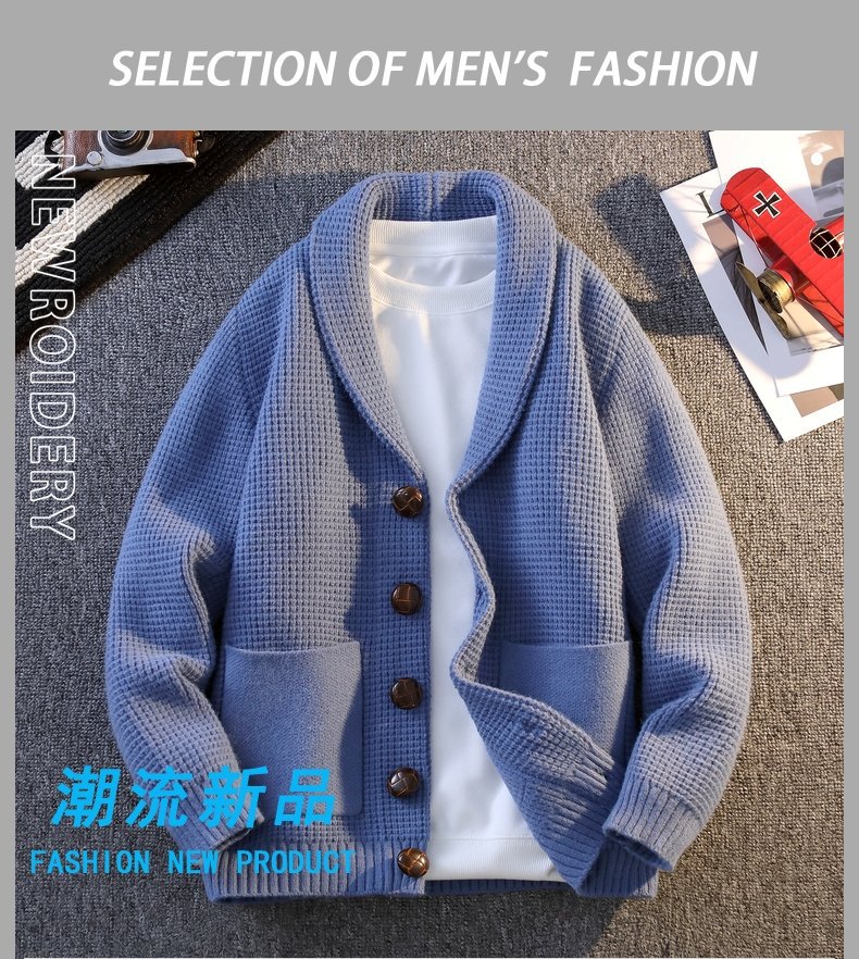 청록색 니트 가디건 한국 스타일 가을 겨울 코트 두꺼운 루즈핏 스웨터 남성 트렌디 레트로 상의 니트웨어스토어 가기