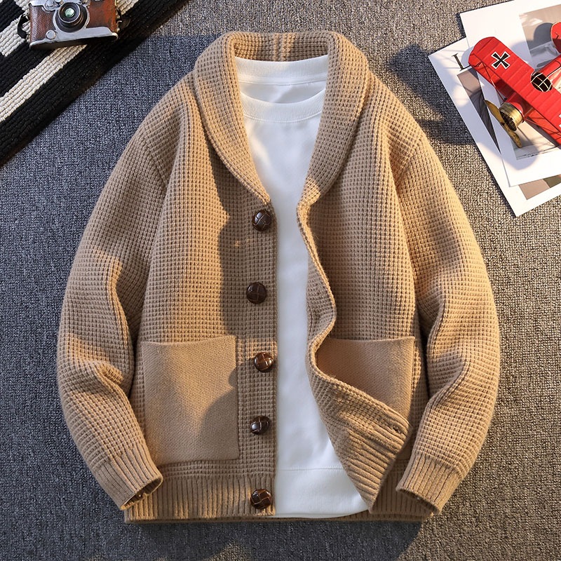 청록색 니트 가디건 한국 스타일 가을 겨울 코트 두꺼운 루즈핏 스웨터 남성 트렌디 레트로 상의 니트웨어