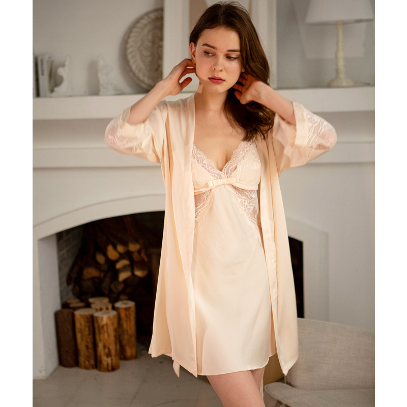 P9800 봄 여름 레이스 잠옷 여성 여름 섹시 가슴 패드가 있는 슬립 드레스 여성 여름 실크 잠옷 홈웨어