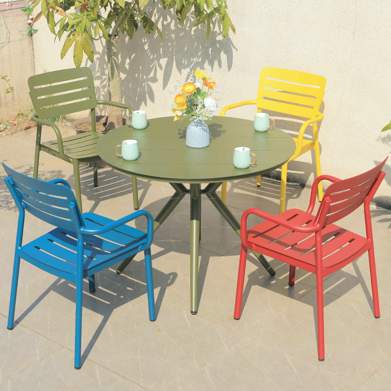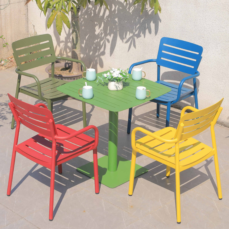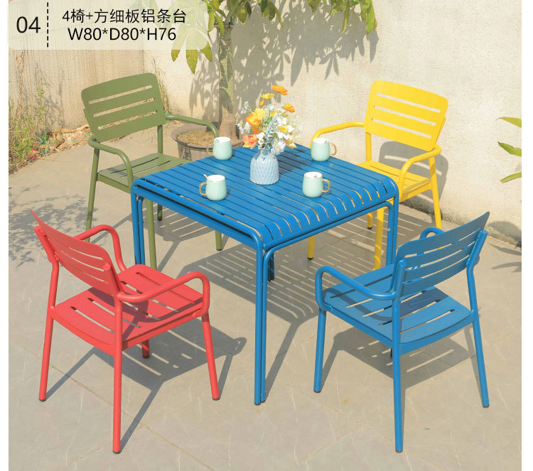 북유럽 발코니 캐주얼 컬러 모든 알루미늄 테이블과 의자 조합 간단한 야외 안뜰 야외 테라스 정원 식탁 의자스토어 가기