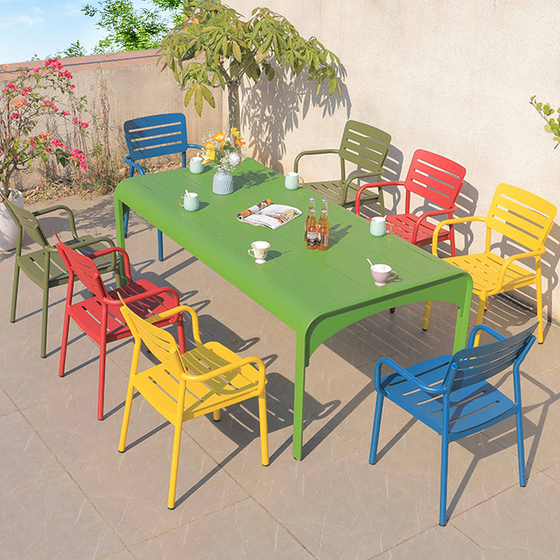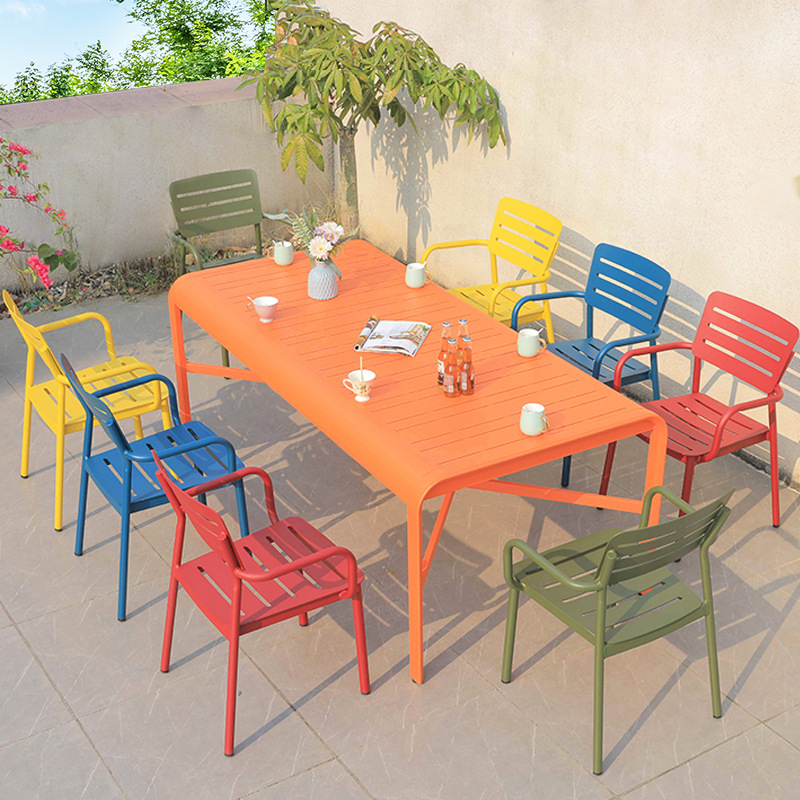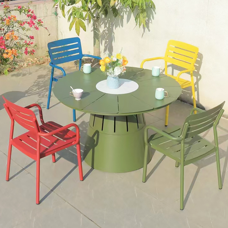 북유럽 발코니 캐주얼 컬러 모든 알루미늄 테이블과 의자 조합 간단한 야외 안뜰 야외 테라스 정원 식탁 의자