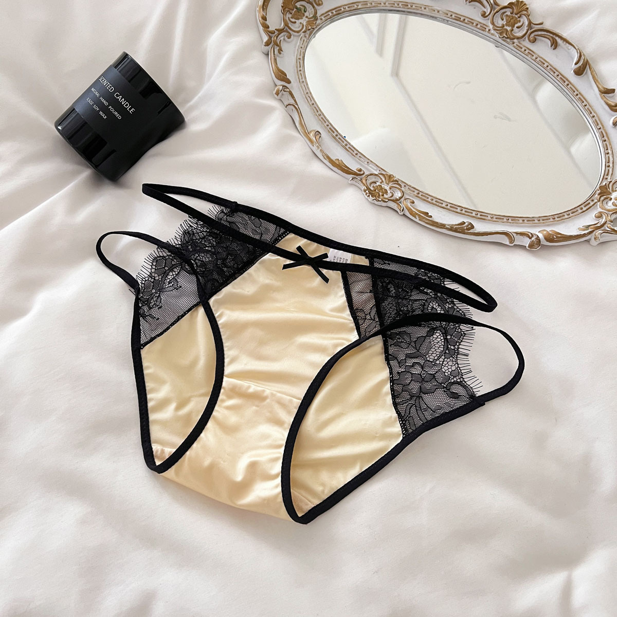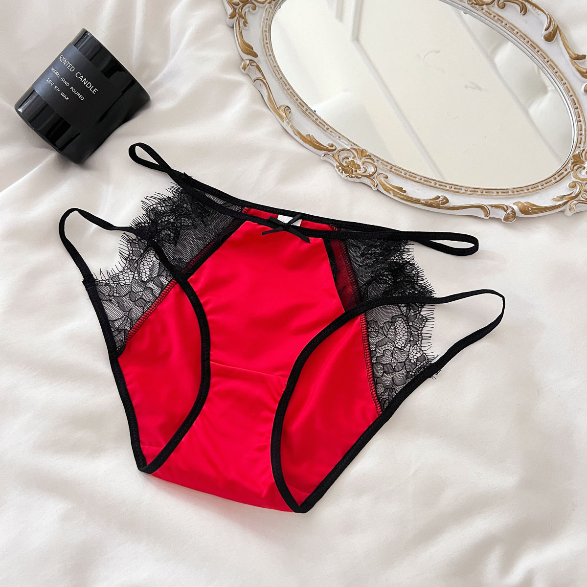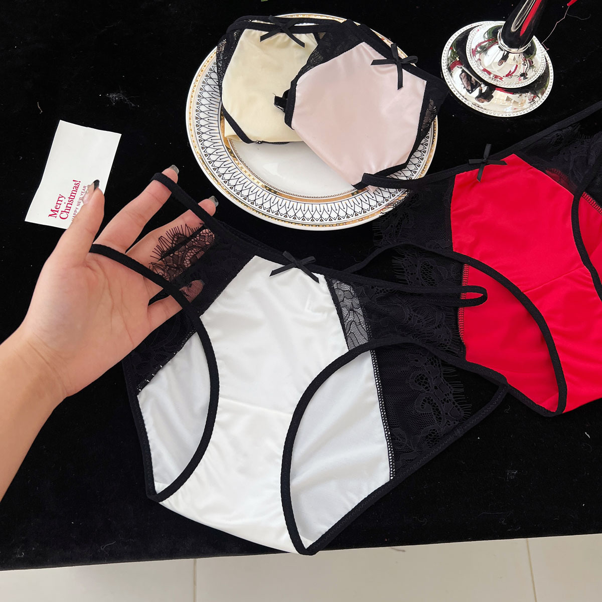 달콤한 프랑스 스타일 섹시한 레이스 속옷 여성의 봄과 여름 얇은 통기성 코튼 크로트 중간 허리 엉덩이 소녀의 브리프