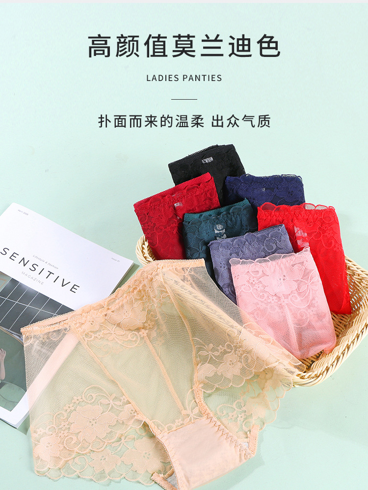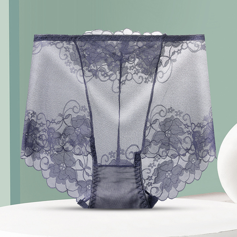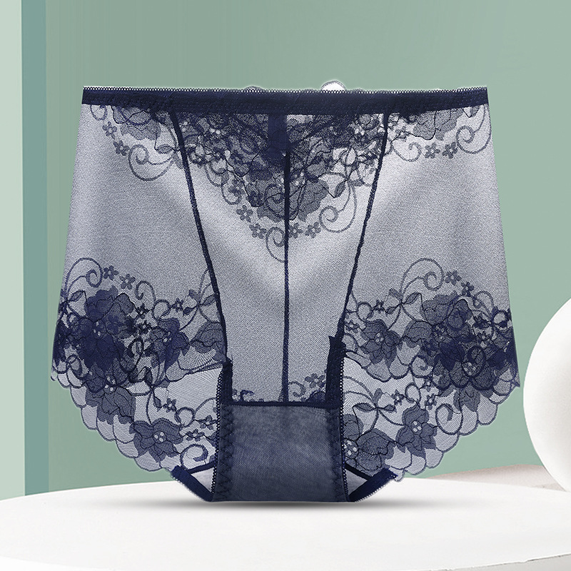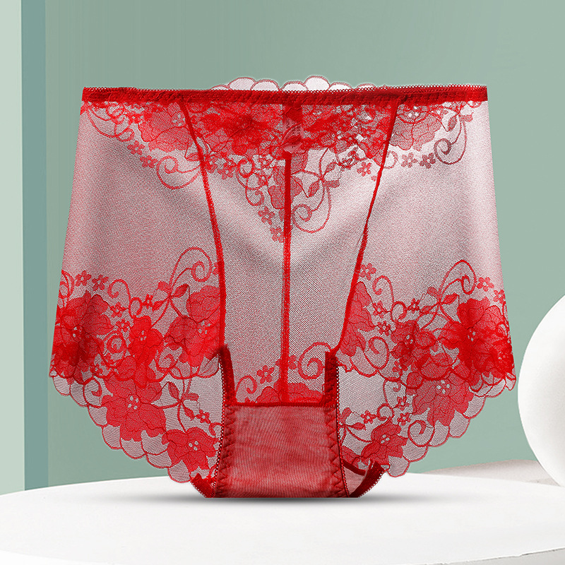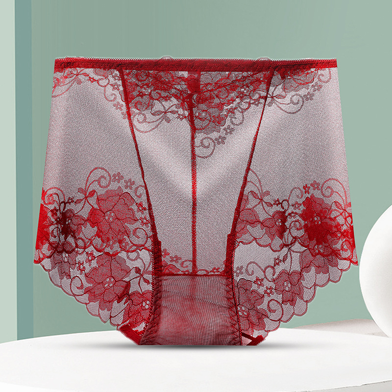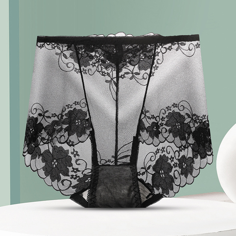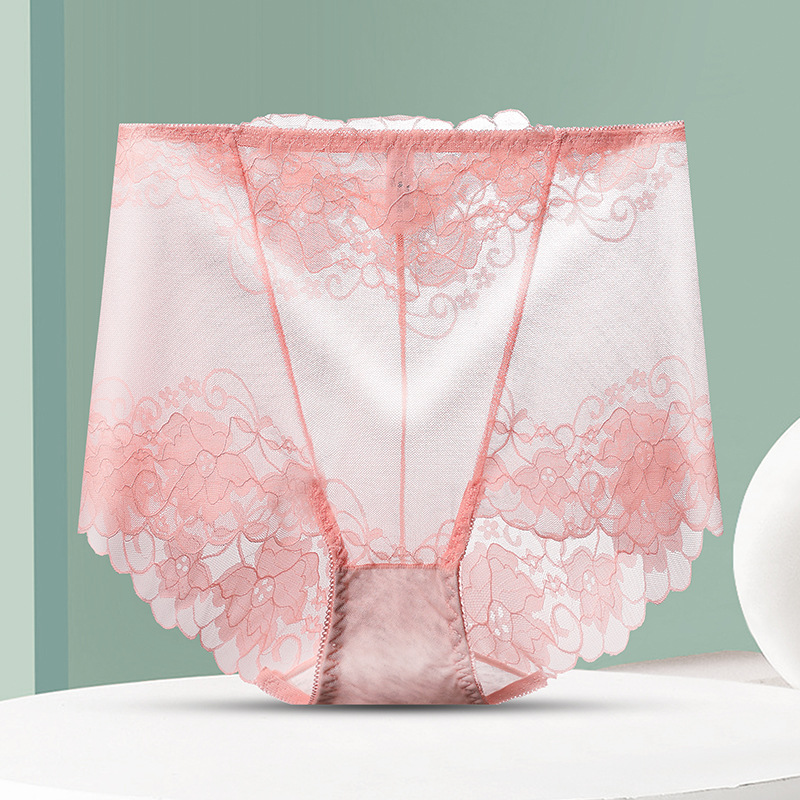 중간 허리 섹시 트레이스 얇은 메쉬 레이스 속옷 여성 투명한 편안한 통통녀 플러스 사이즈 브리프스토어 가기