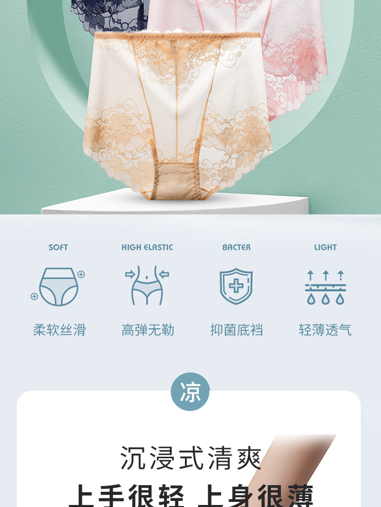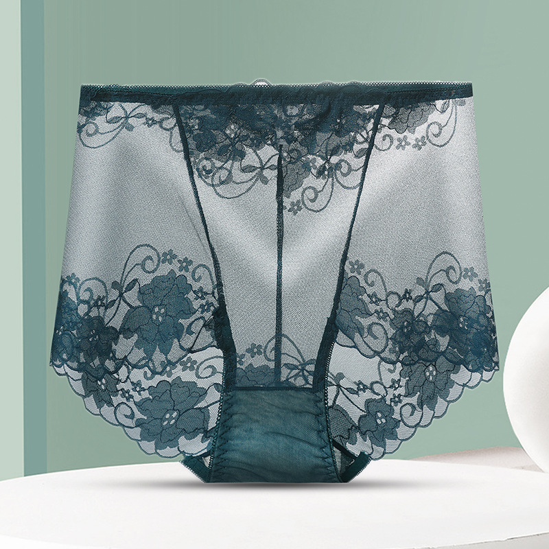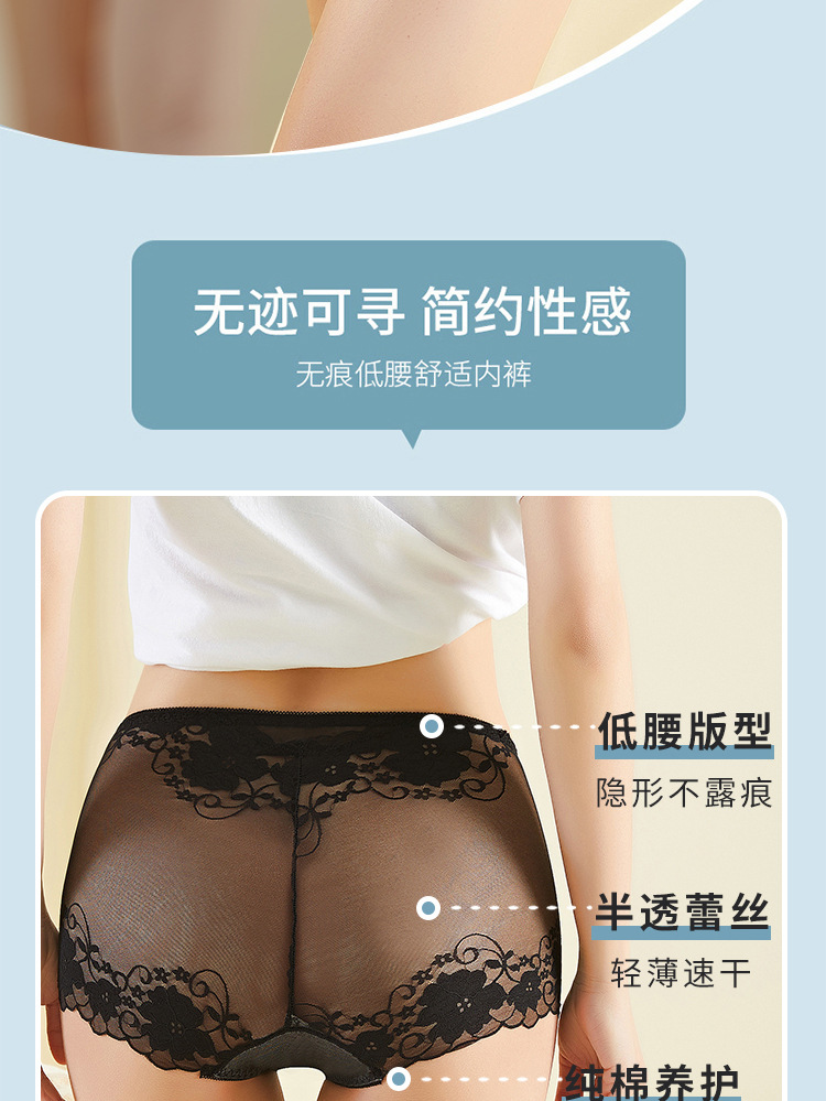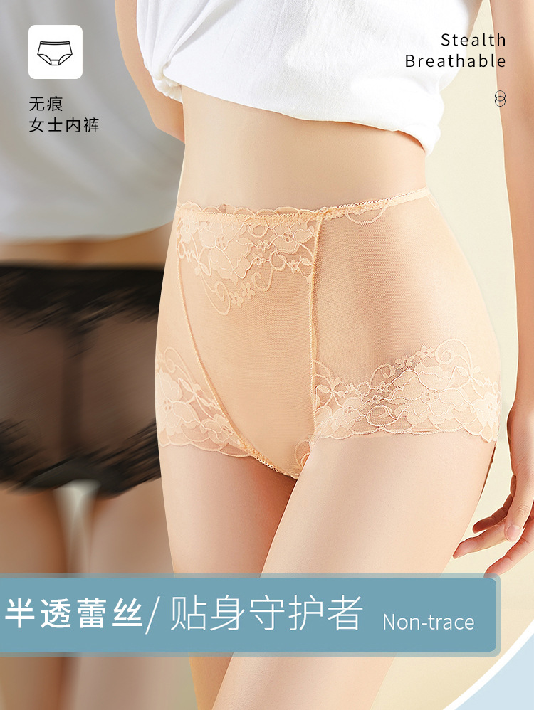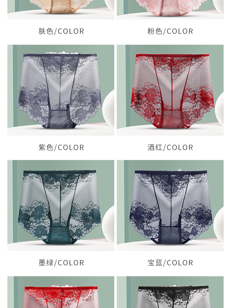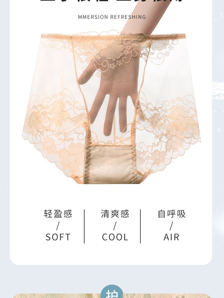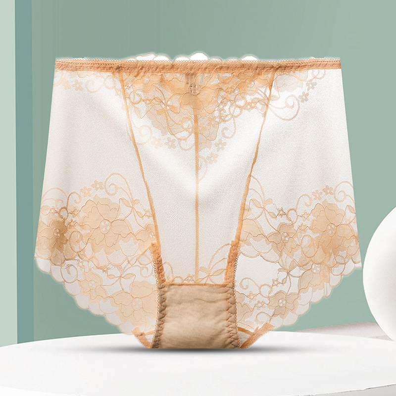 중간 허리 섹시 트레이스 얇은 메쉬 레이스 속옷 여성 투명한 편안한 통통녀 플러스 사이즈 브리프스토어 가기
