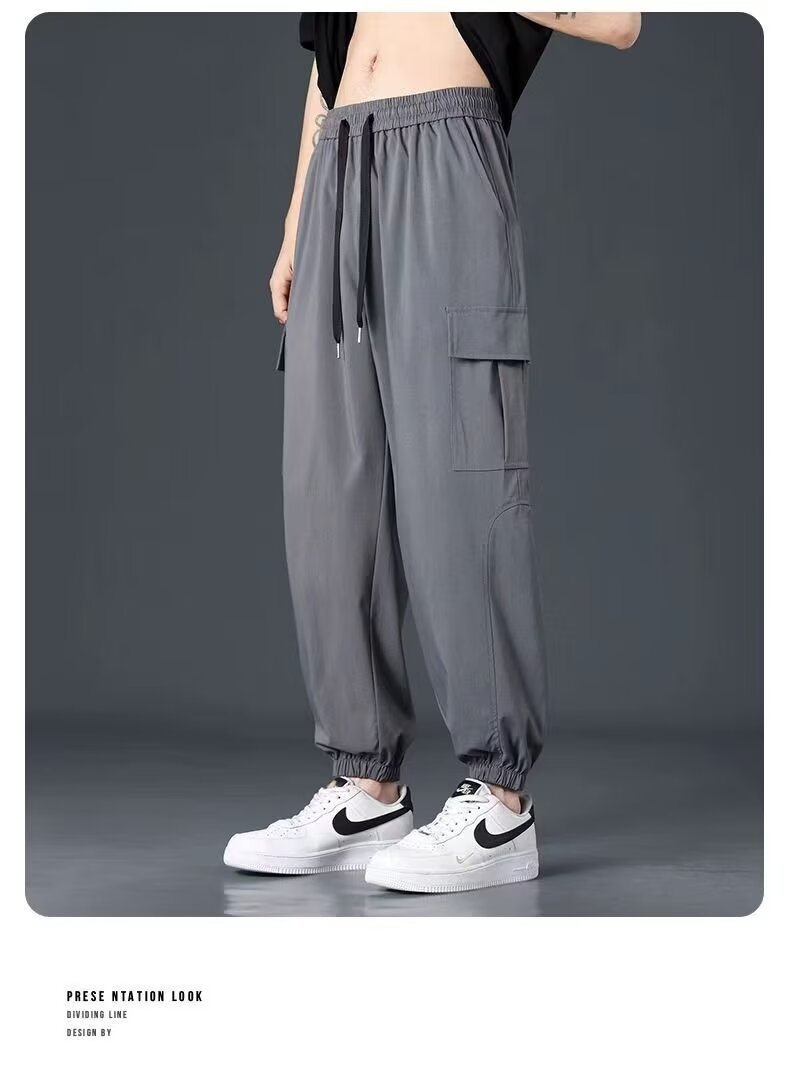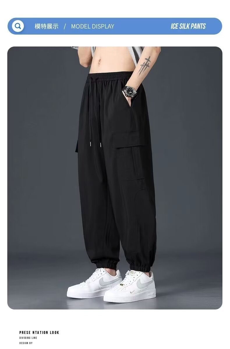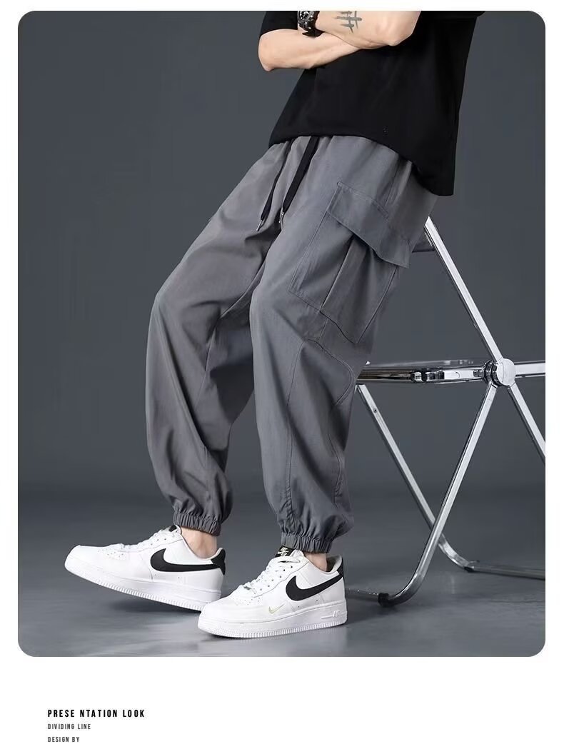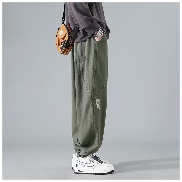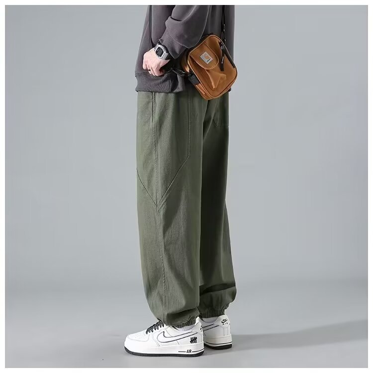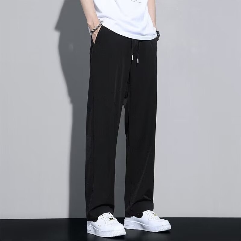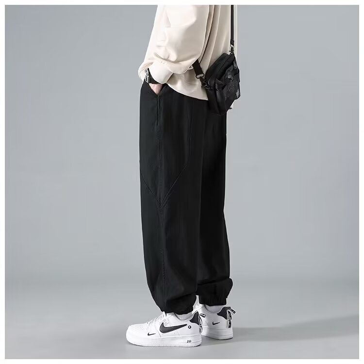 유행 브랜드 줄무늬 캐주얼 바지 남자 봄과 가을 넓은 다리 스트레이트 바지 홍콩 스타일 플러스 사이즈 느슨한 스포츠 바지스토어 가기