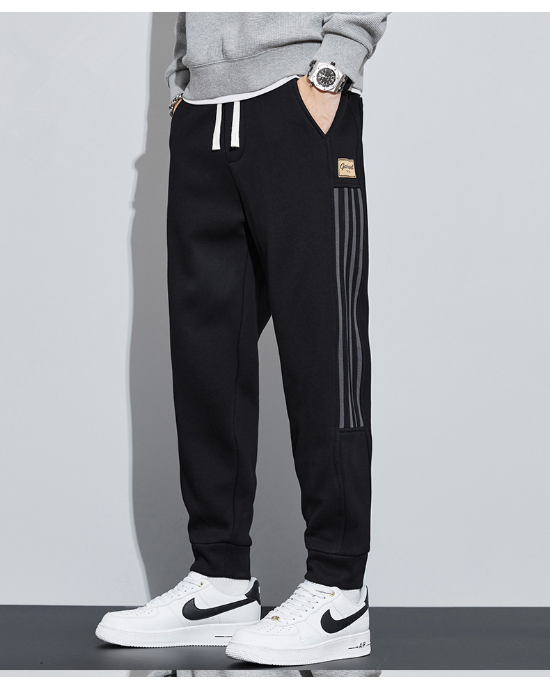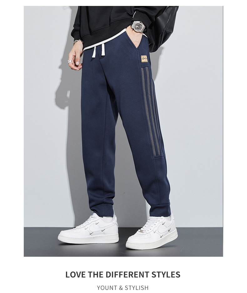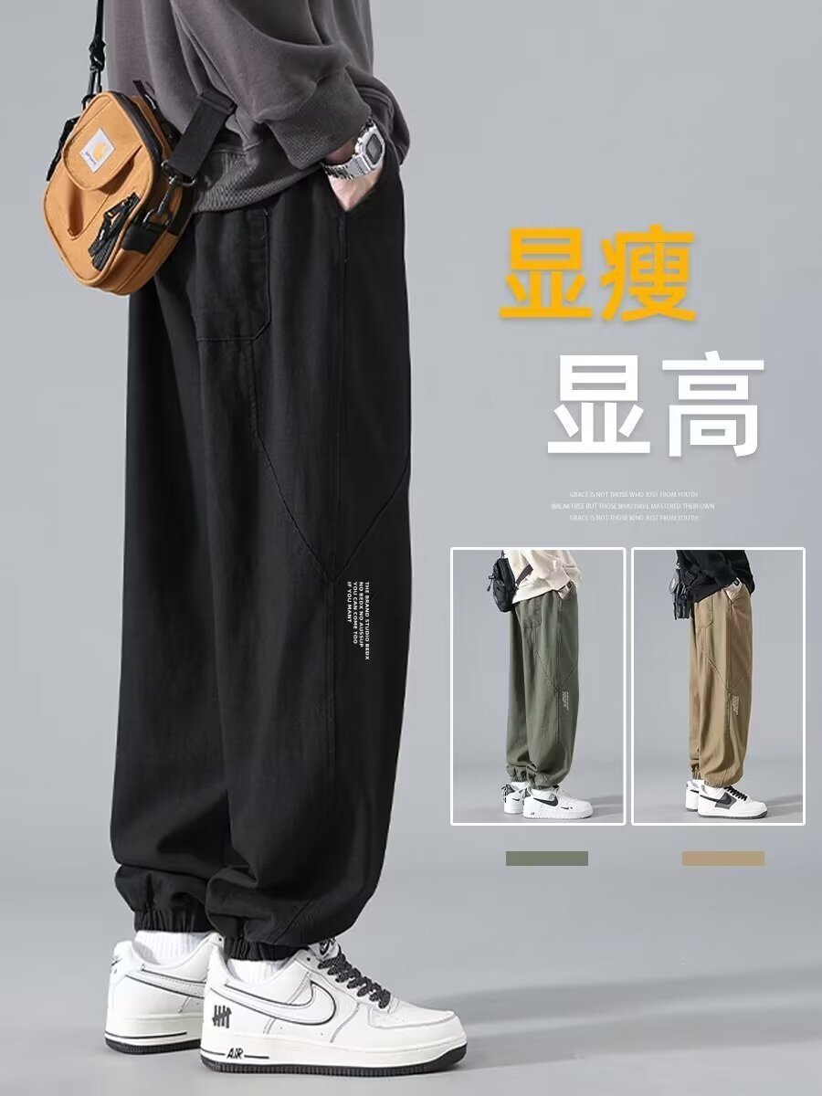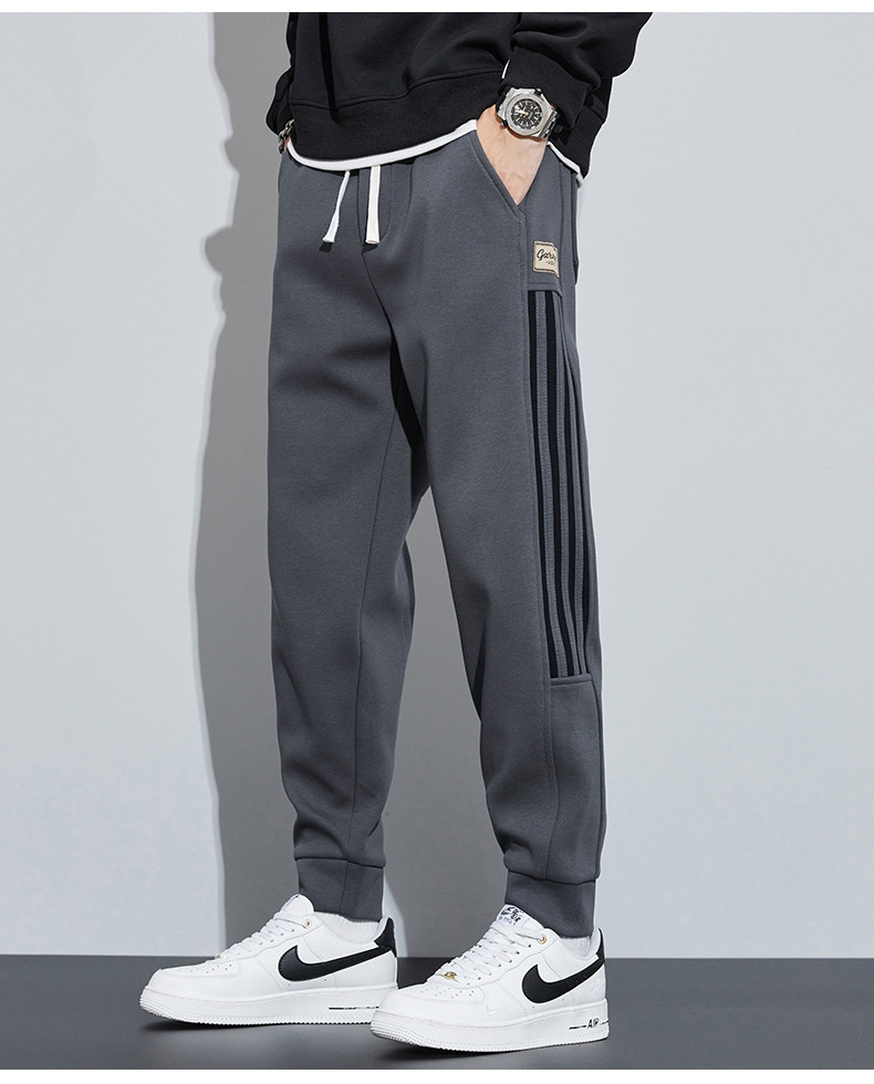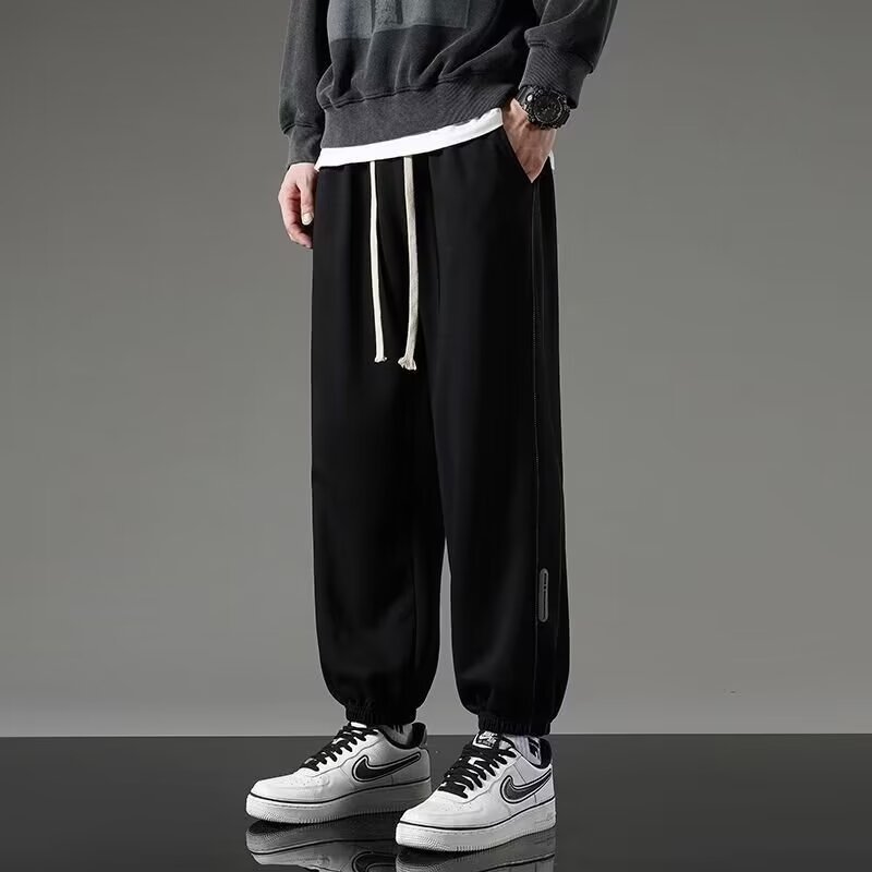 유행 브랜드 줄무늬 캐주얼 바지 남자 봄과 가을 넓은 다리 스트레이트 바지 홍콩 스타일 플러스 사이즈 느슨한 스포츠 바지