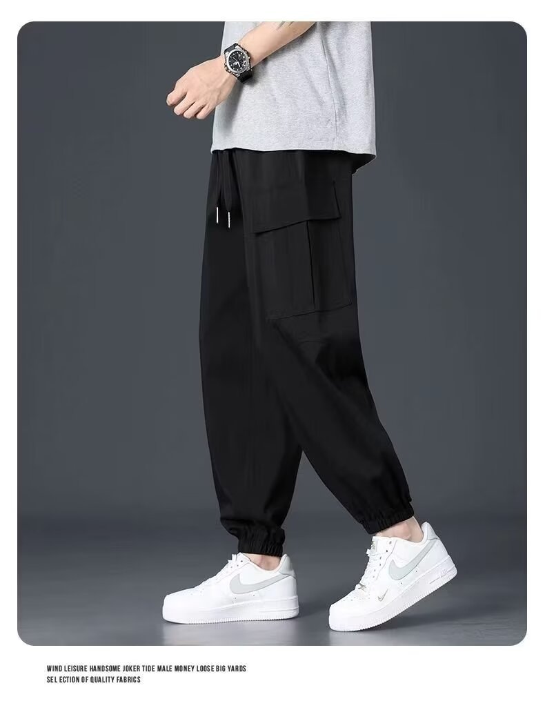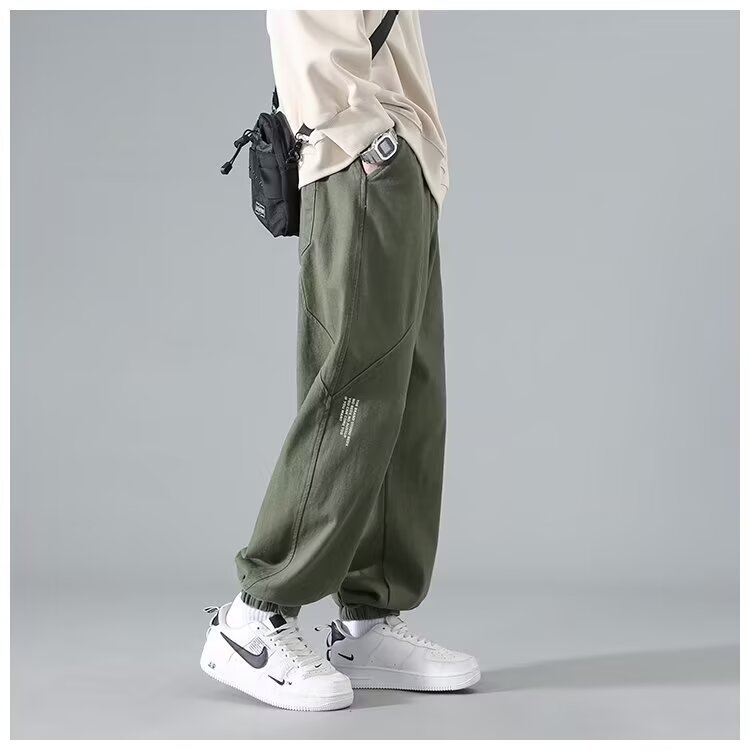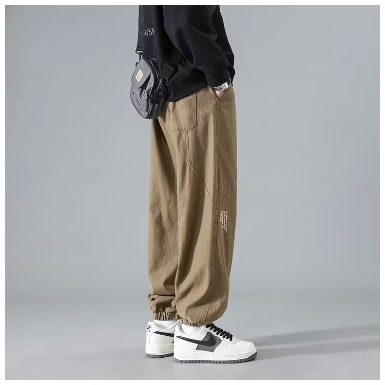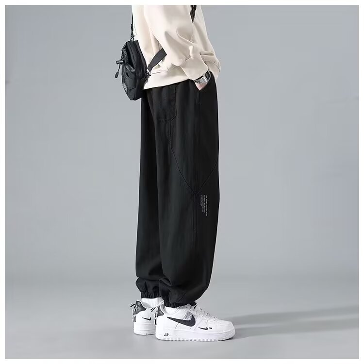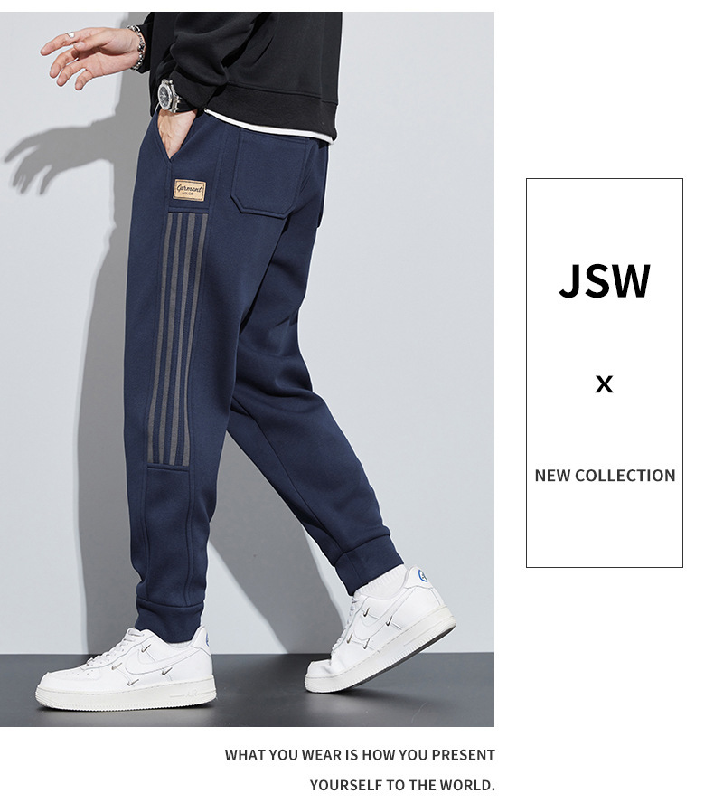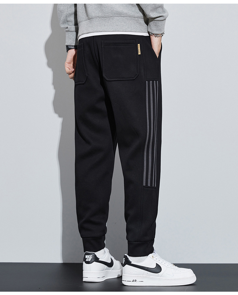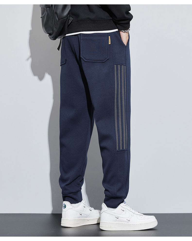 유행 브랜드 줄무늬 캐주얼 바지 남자 봄과 가을 넓은 다리 스트레이트 바지 홍콩 스타일 플러스 사이즈 느슨한 스포츠 바지