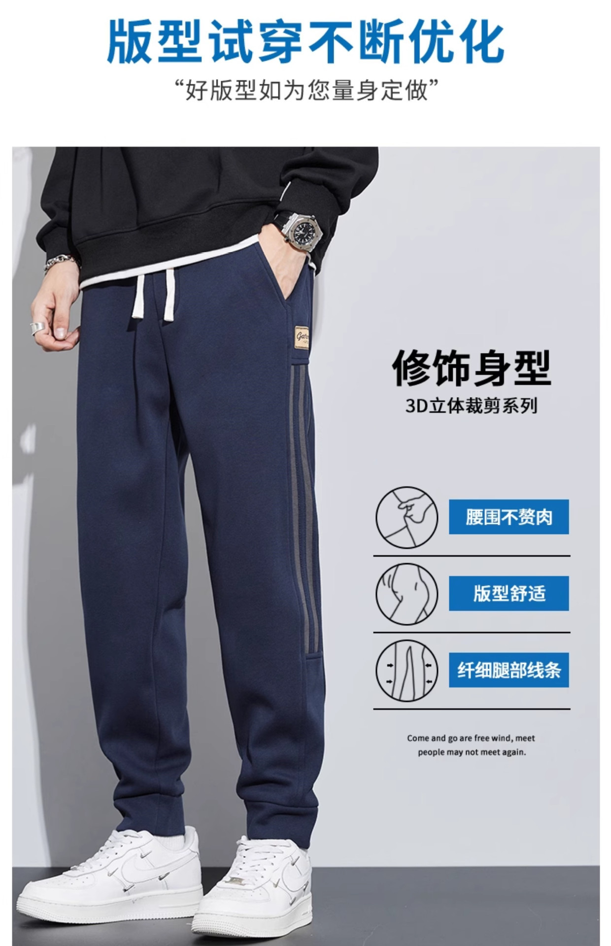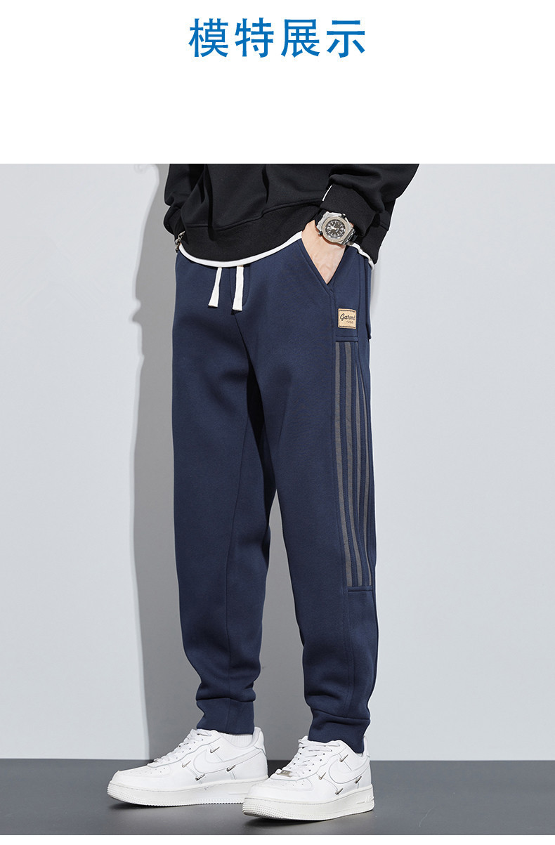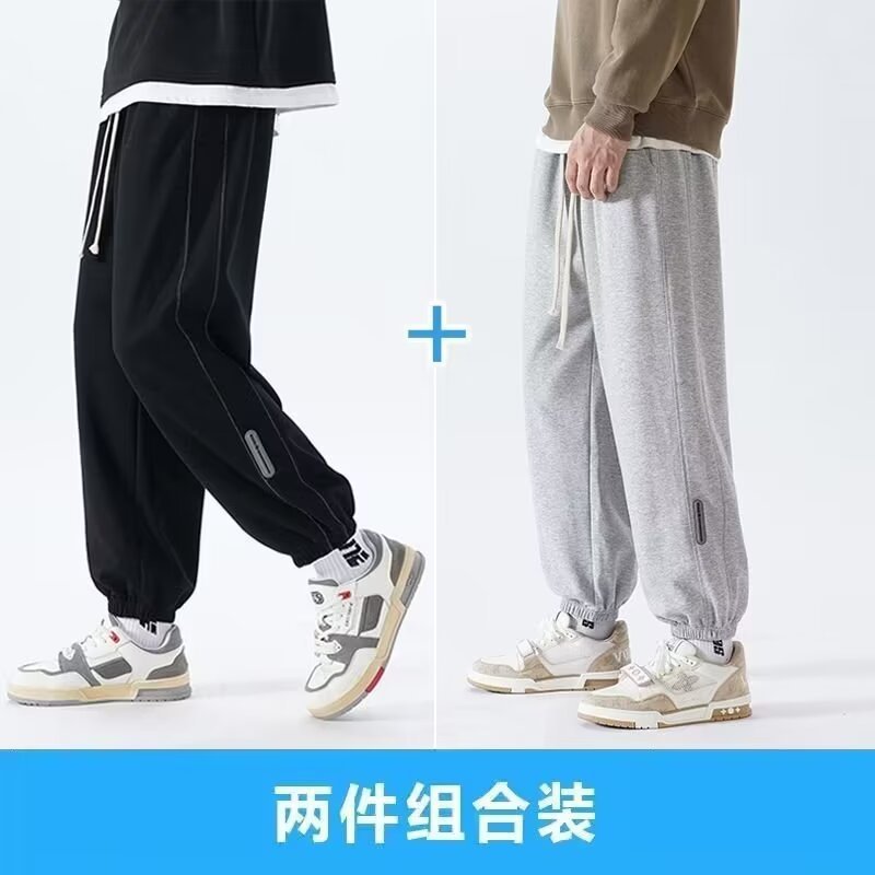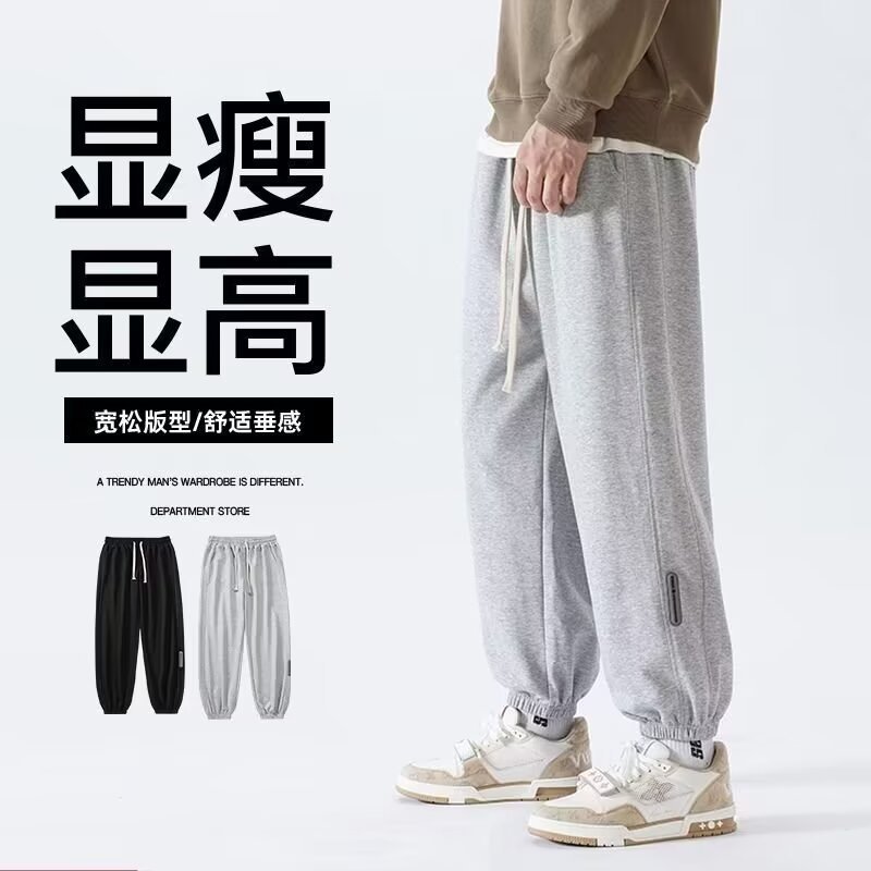 潮牌条纹休闲裤子男春秋阔腿直筒裤港风大码宽松运动卫裤夏季学生