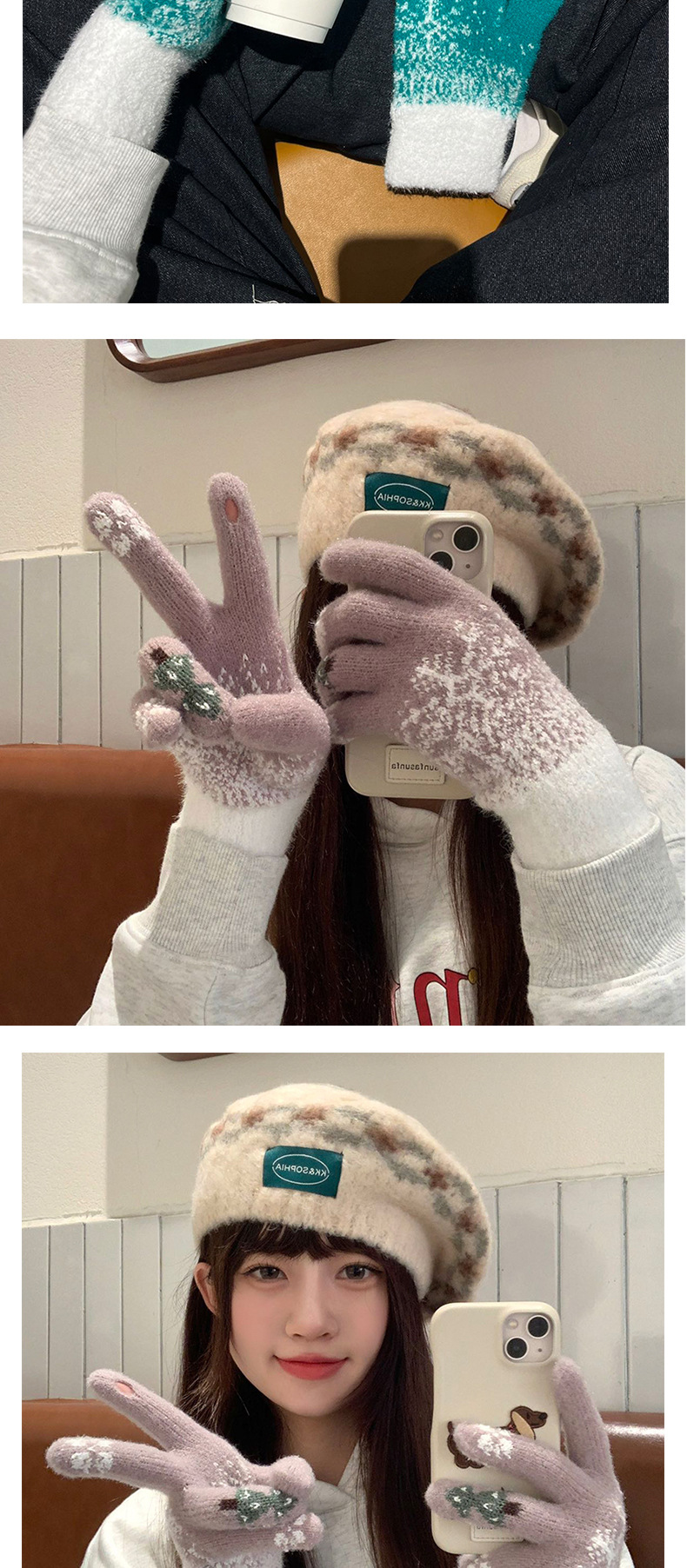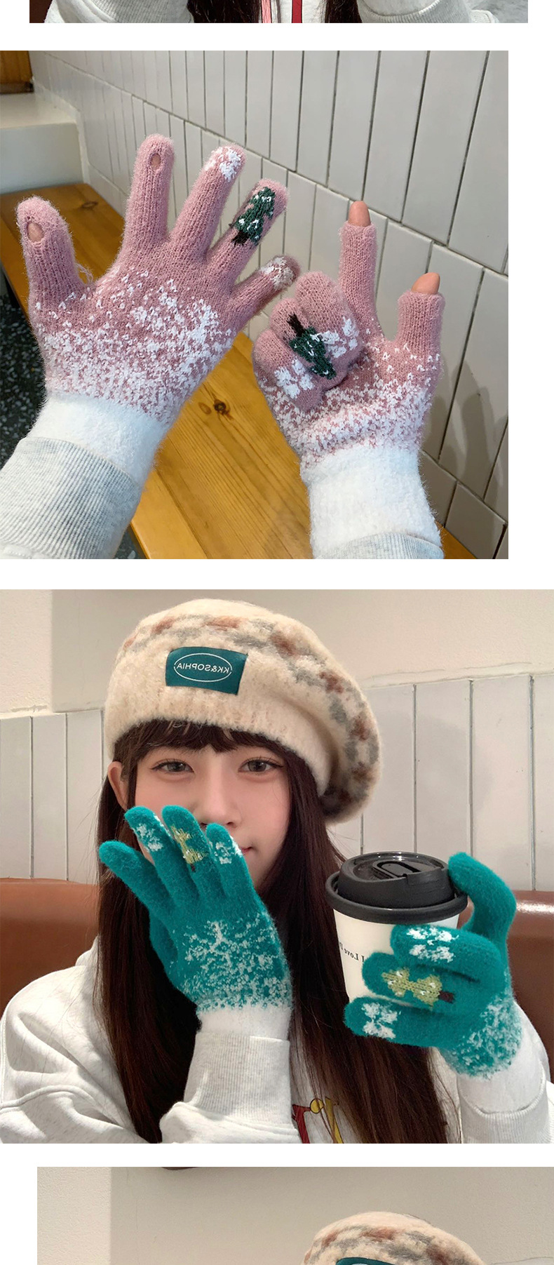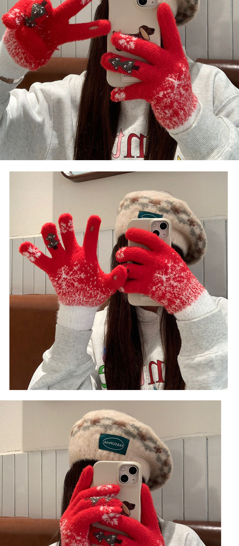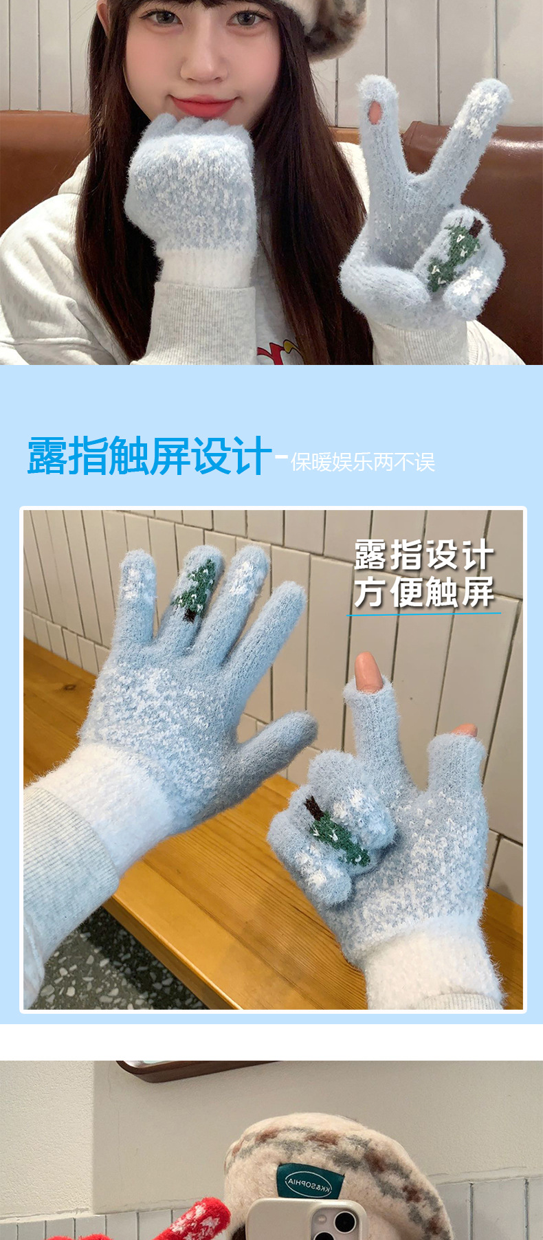 이슬 두 손가락 장갑 여성의 가을과 겨울 2024 새로운 크리스마스 따뜻한 기모 귀여운 학생 다섯 손가락 방풍 터치 스크린스토어 가기