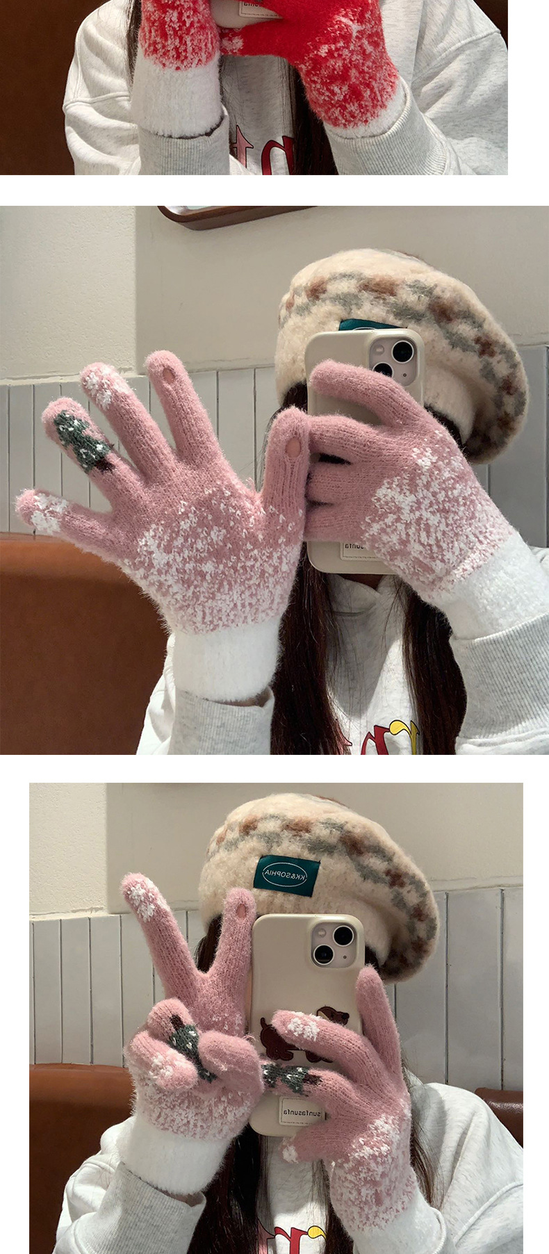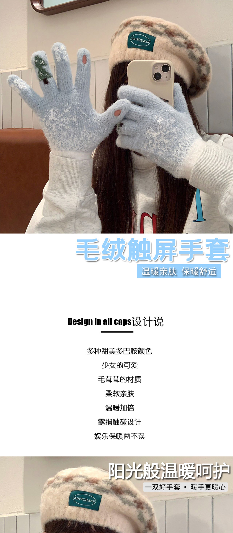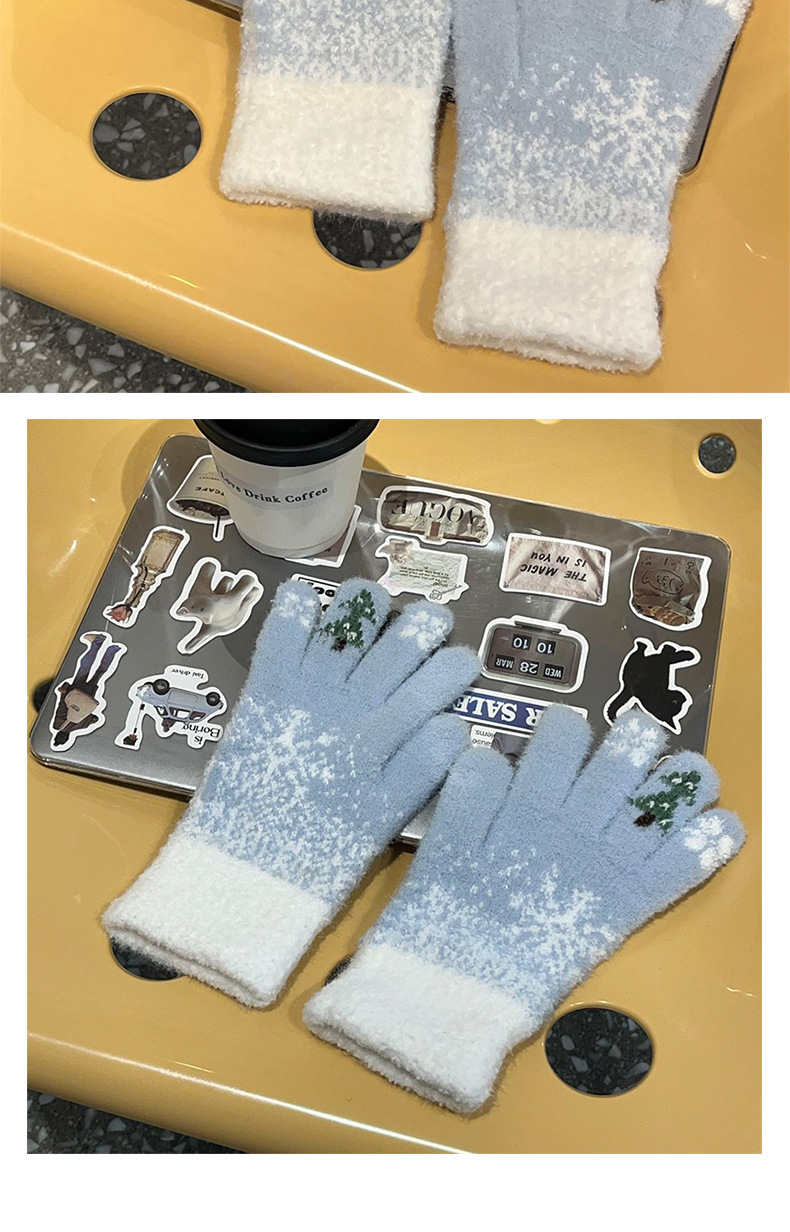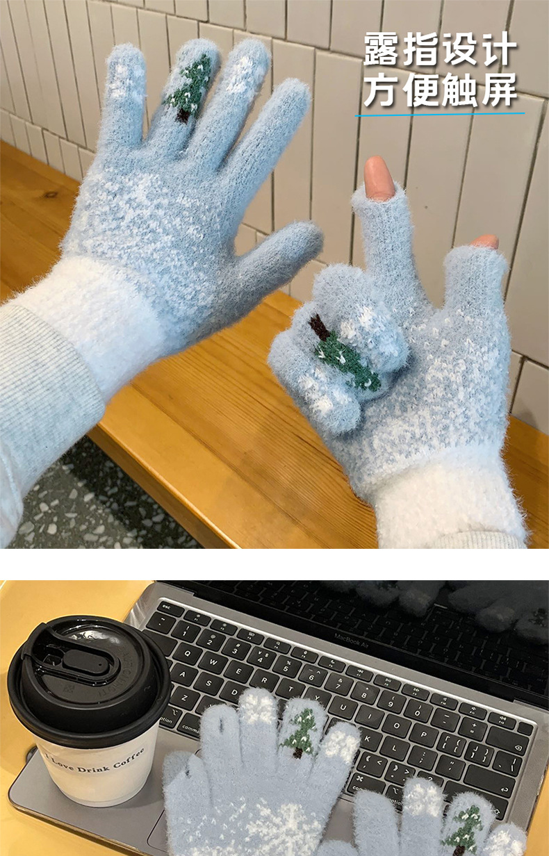 이슬 두 손가락 장갑 여성의 가을과 겨울 2024 새로운 크리스마스 따뜻한 기모 귀여운 학생 다섯 손가락 방풍 터치 스크린