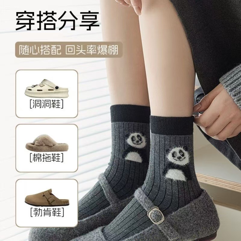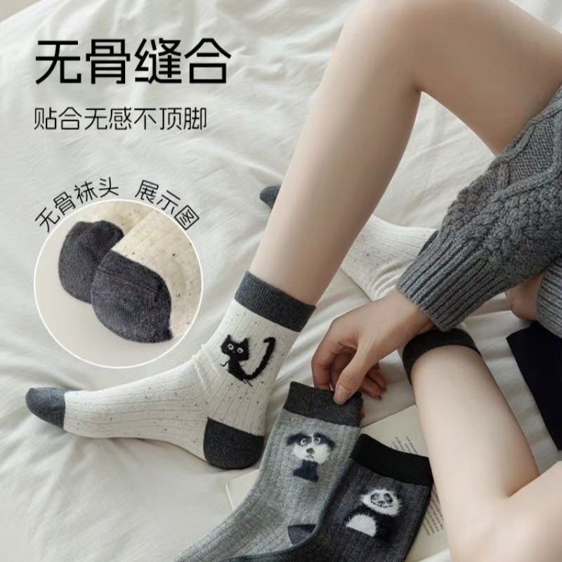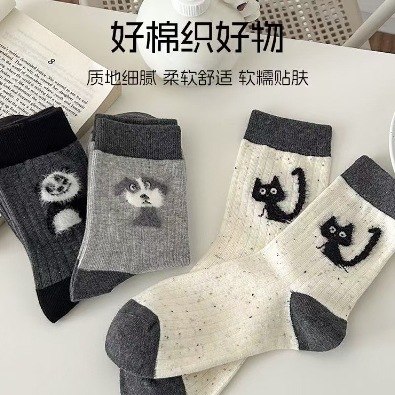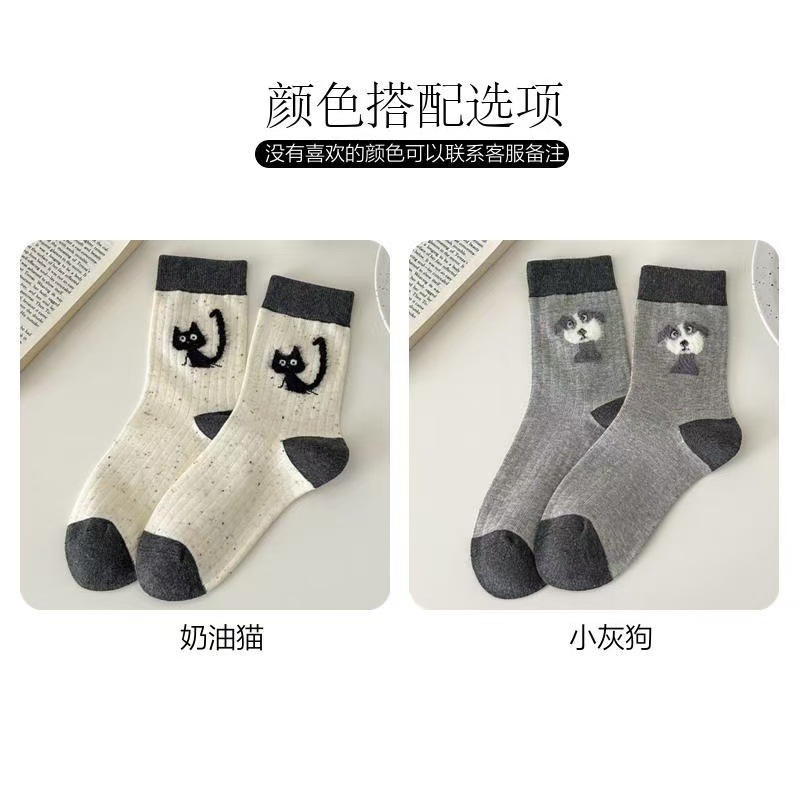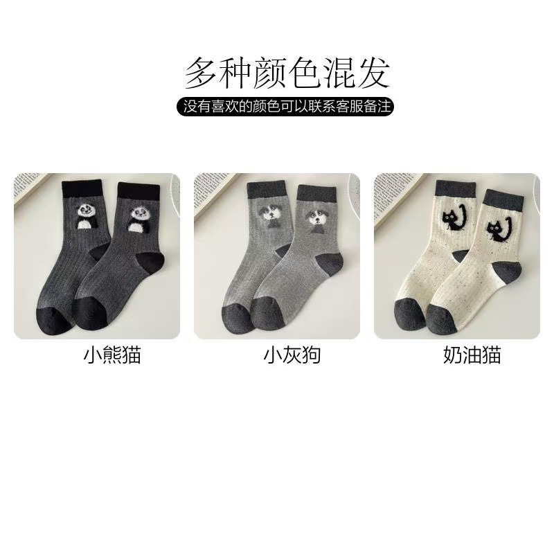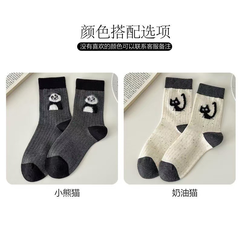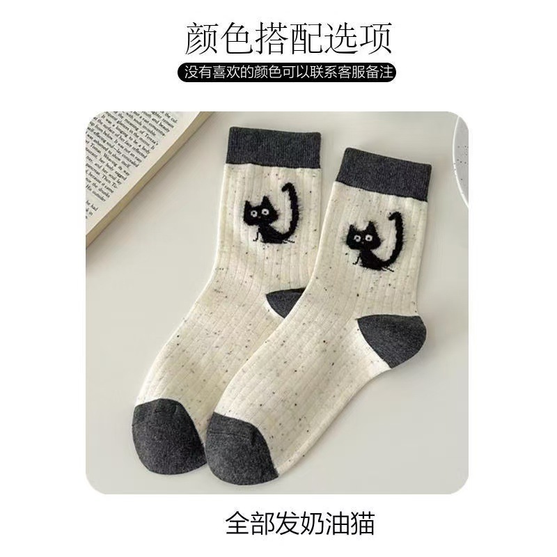 만화 포인트 원사 양말 여성의 중간 길이 스타킹 가을 및 겨울 색상 매칭 Ins 트렌디 한 플러시 봄과 가을 귀여운 스타킹스토어 가기