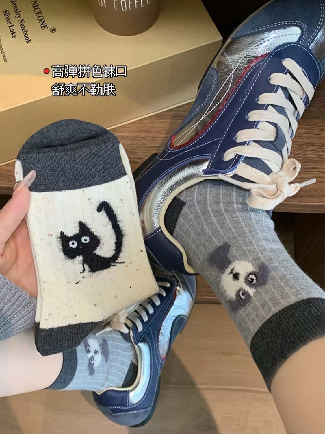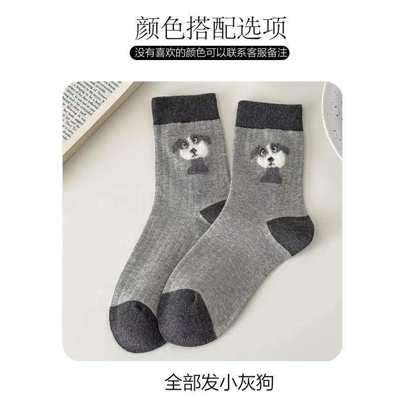만화 포인트 원사 양말 여성의 중간 길이 스타킹 가을 및 겨울 색상 매칭 Ins 트렌디 한 플러시 봄과 가을 귀여운 스타킹