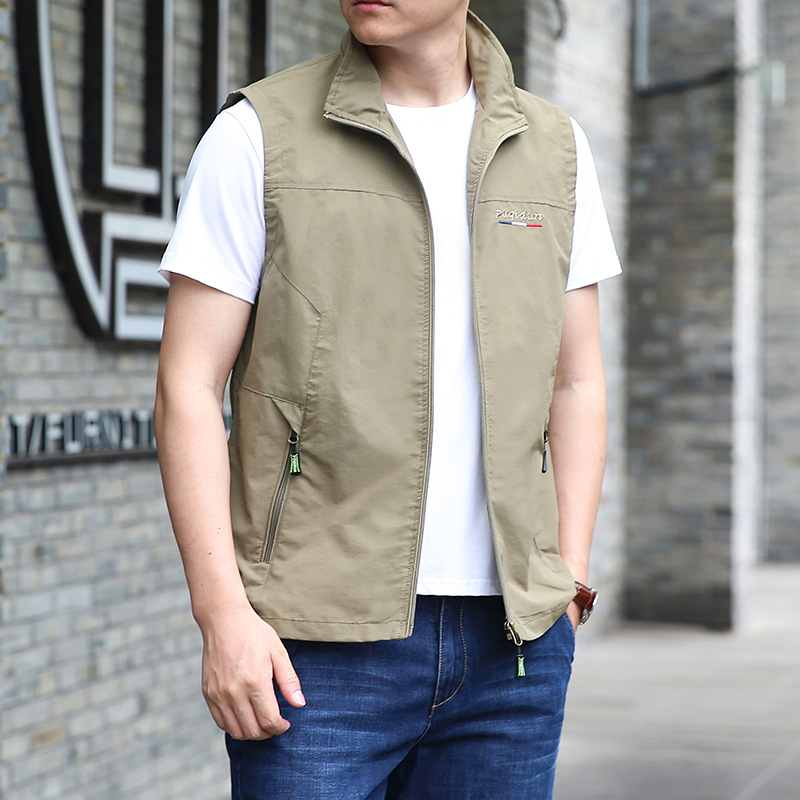 새로운 조끼 남자의 가을 얇은 야외 낚시 사진 조끼 허리 코트 느슨한 플러스 사이즈 캐주얼 스포츠 재킷