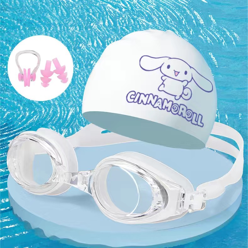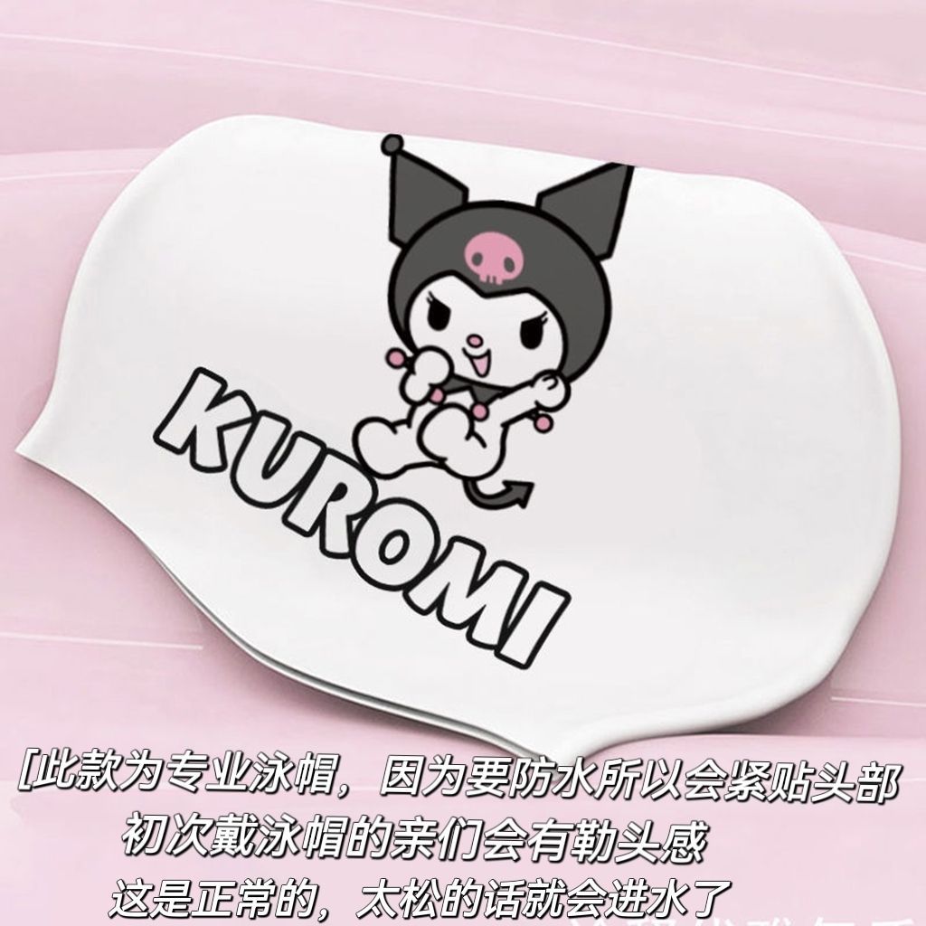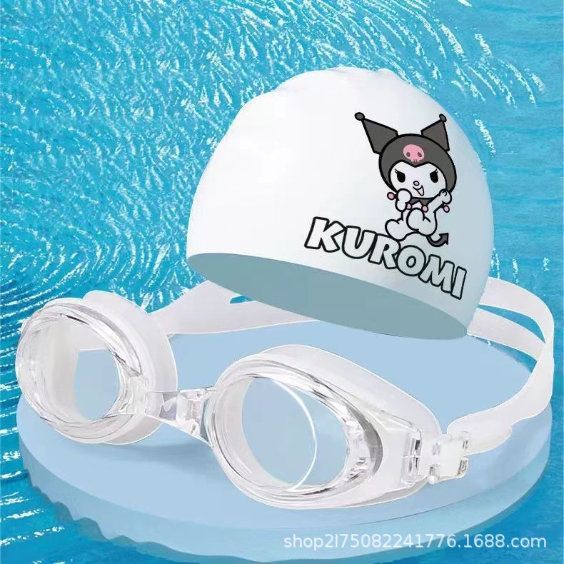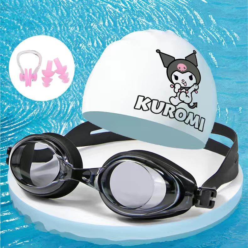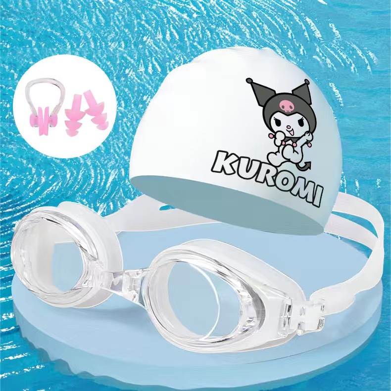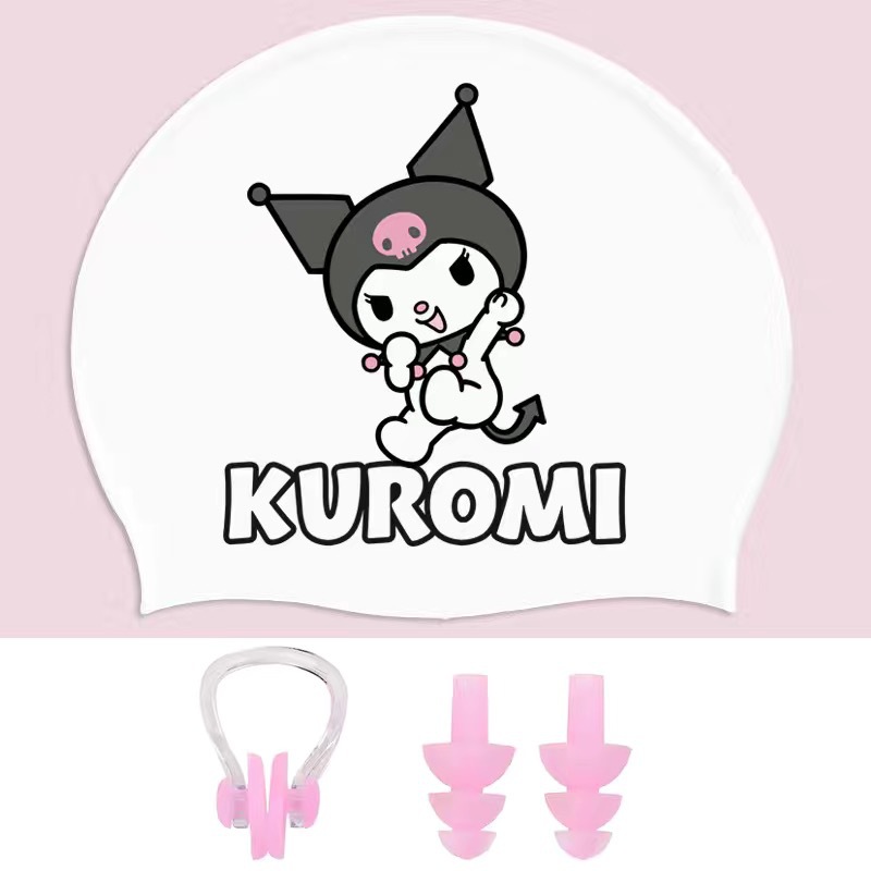 • 쿠로미 수영모 + 흰색 김서림 방지 수영 고글 + 핑크색 코 클립 귀마개