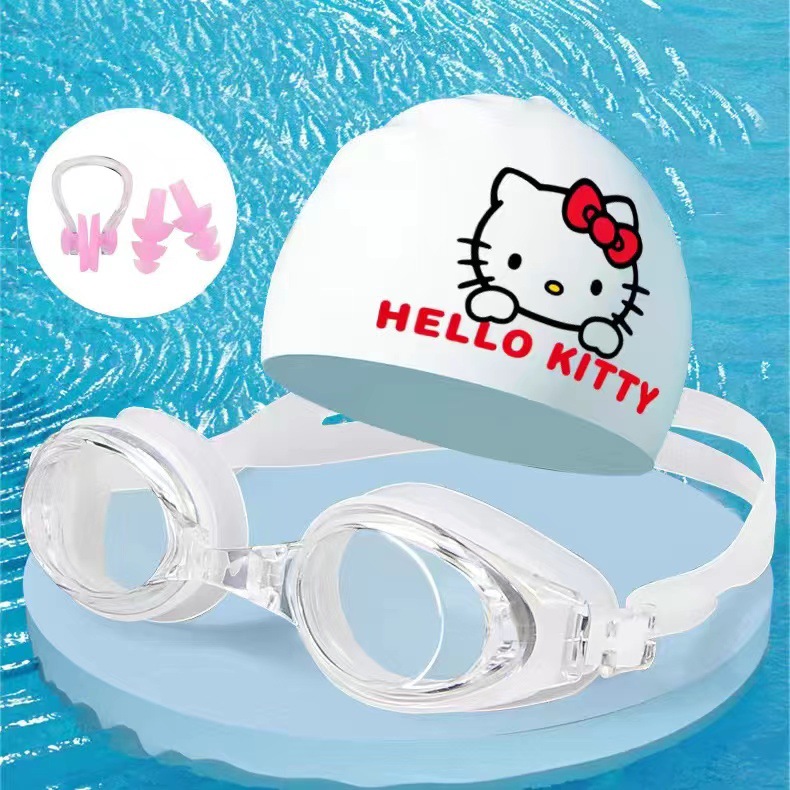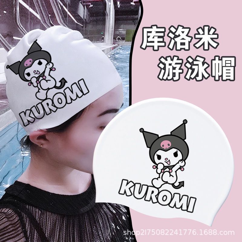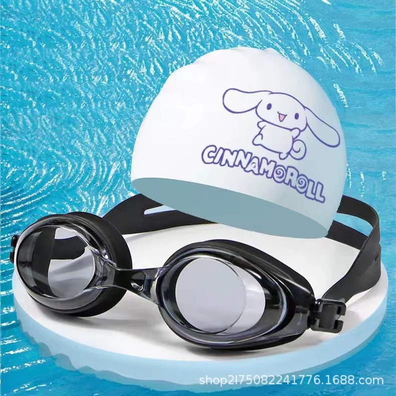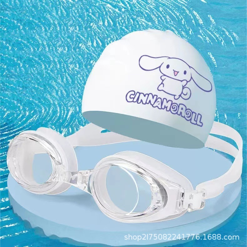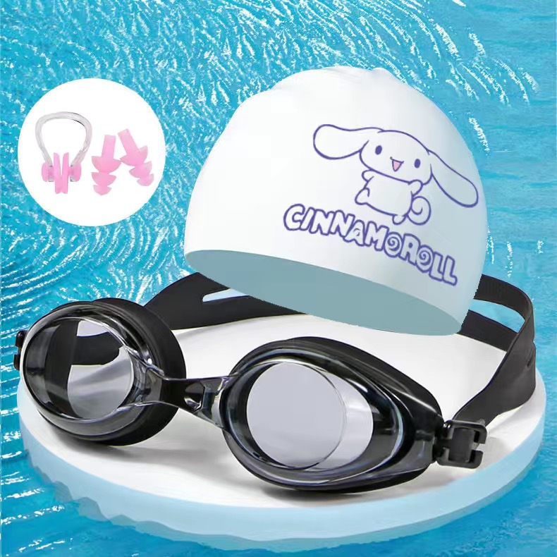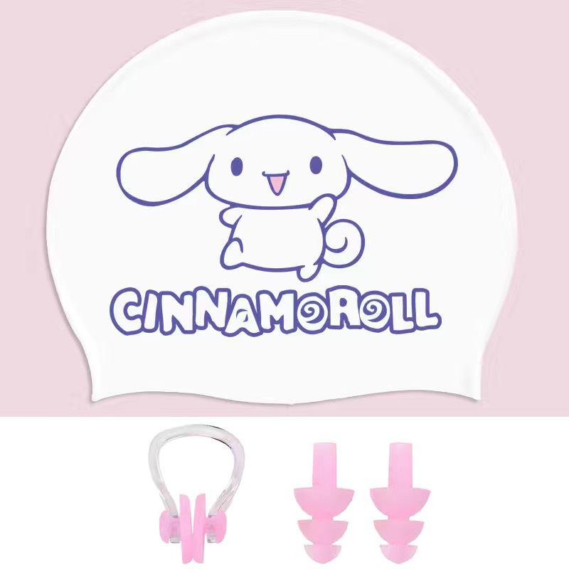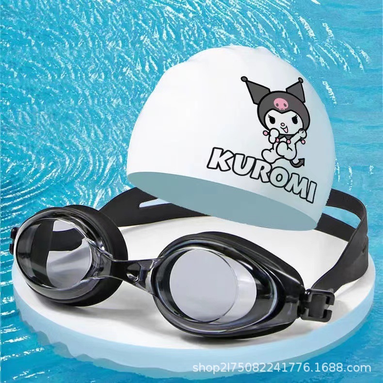 • 쿠로미 수영모 + 흰색 김서림 방지 수영 고글 + 핑크색 코 클립 귀마개