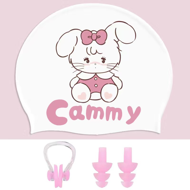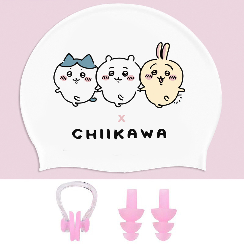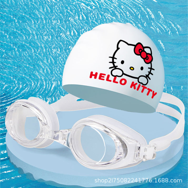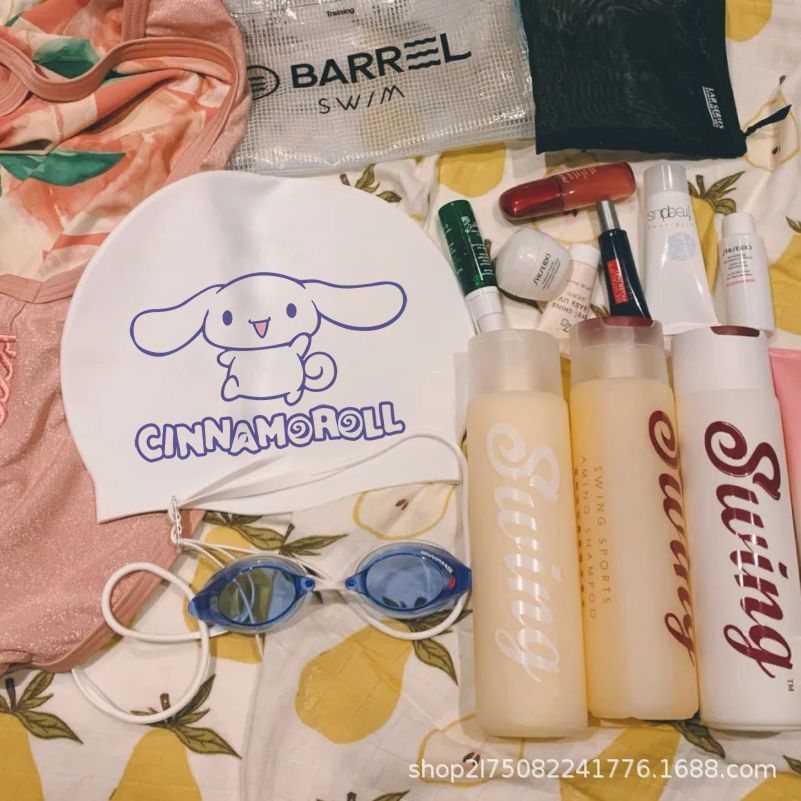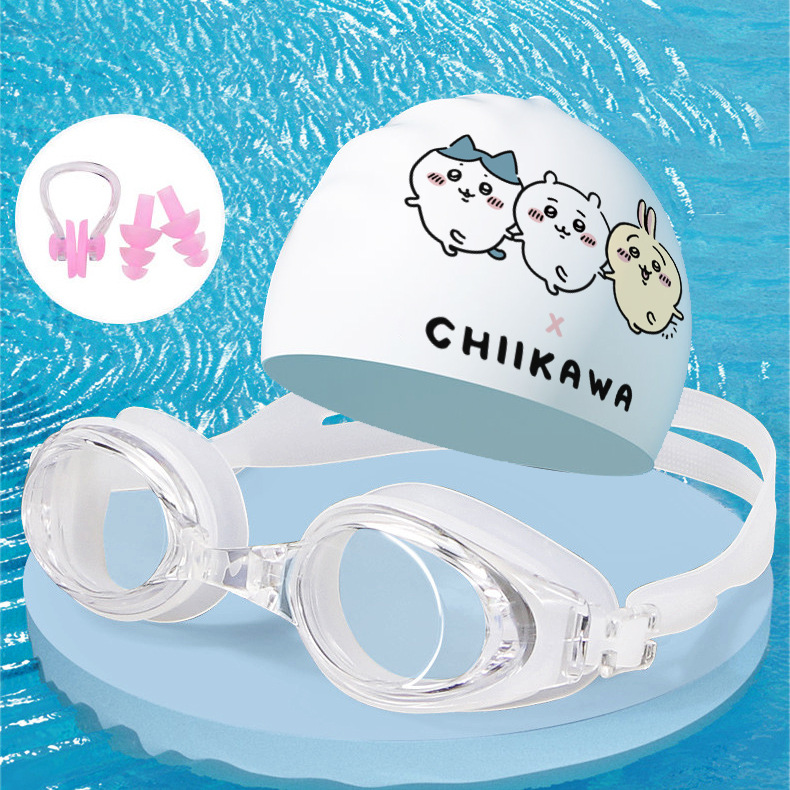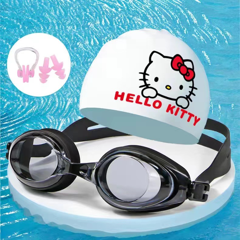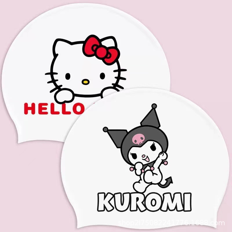 • 쿠로미 수영모 + 흰색 김서림 방지 수영 고글 + 핑크색 코 클립 귀마개