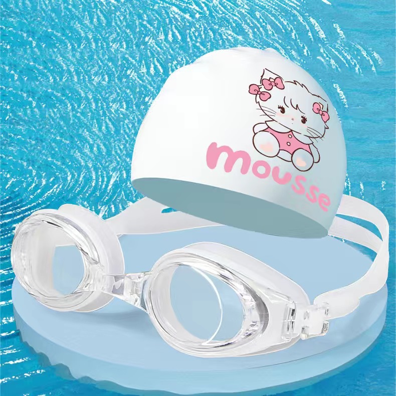 • Mary Cat 방수 수영 모자 + 흰색 김서림 방지 수영 고글
