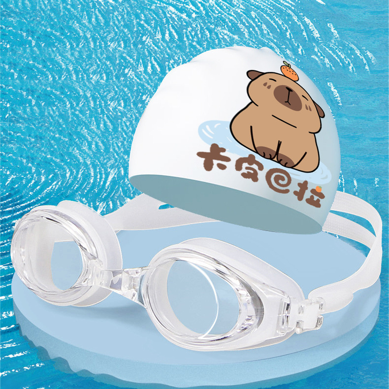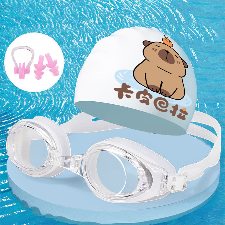 • 카피발라 수영모 + 흰색 수영 고글 + 코 클립 귀마개