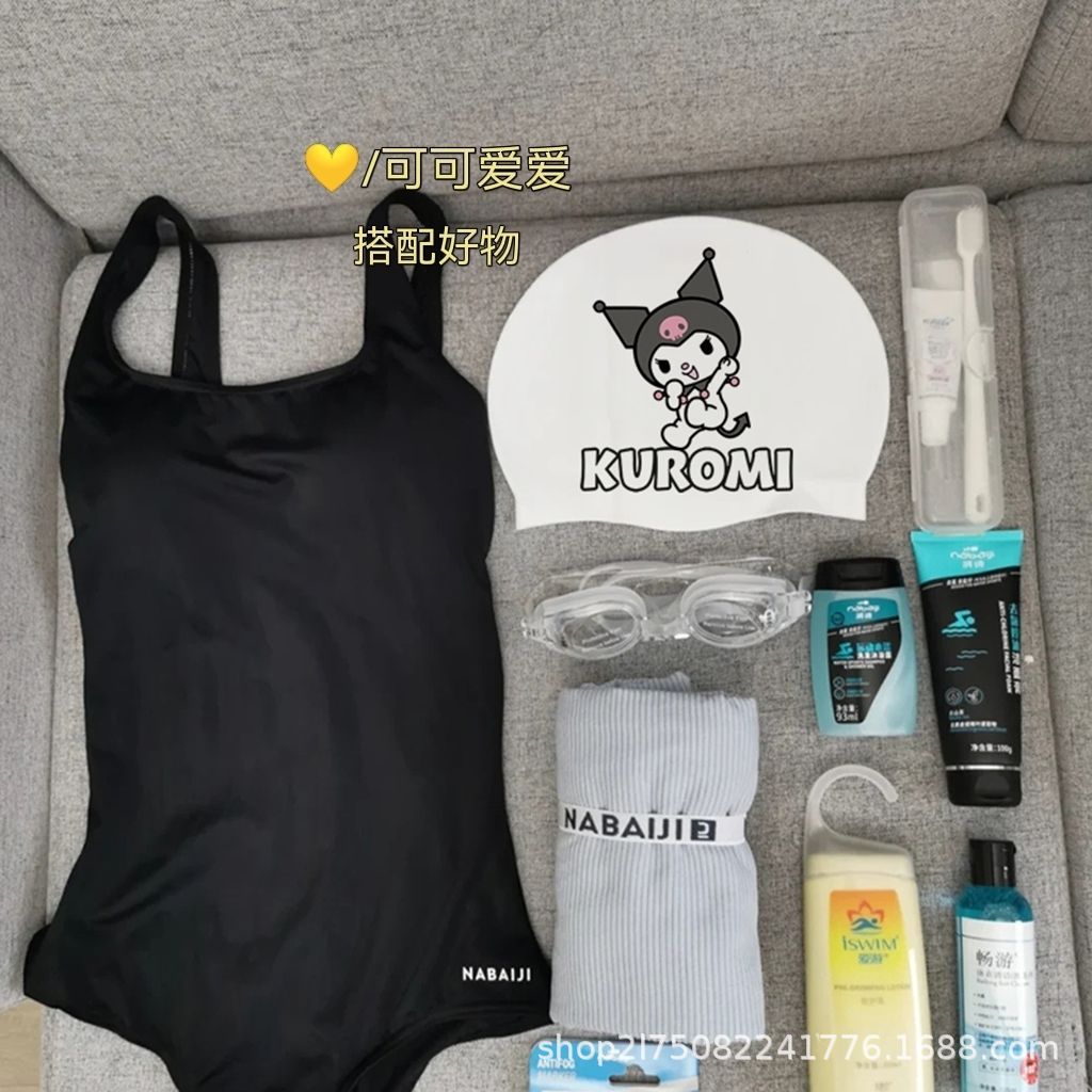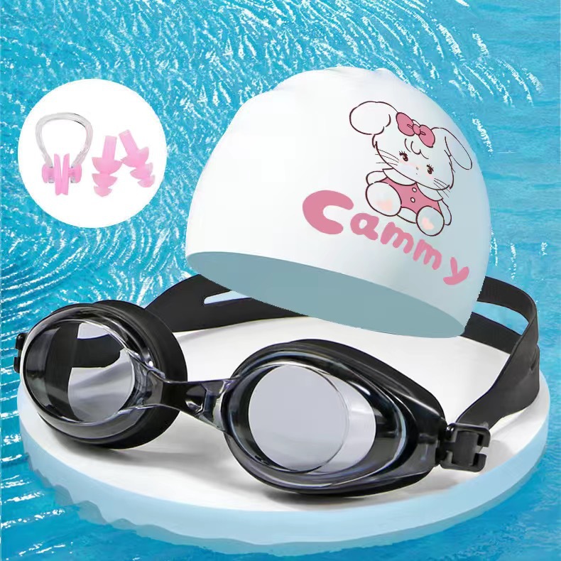 • 쿠로미 수영모 + 검정색 김서림 방지 수영 고글 + 분홍색 코 클립 귀마개