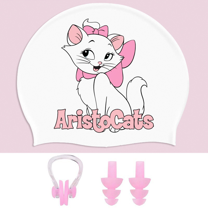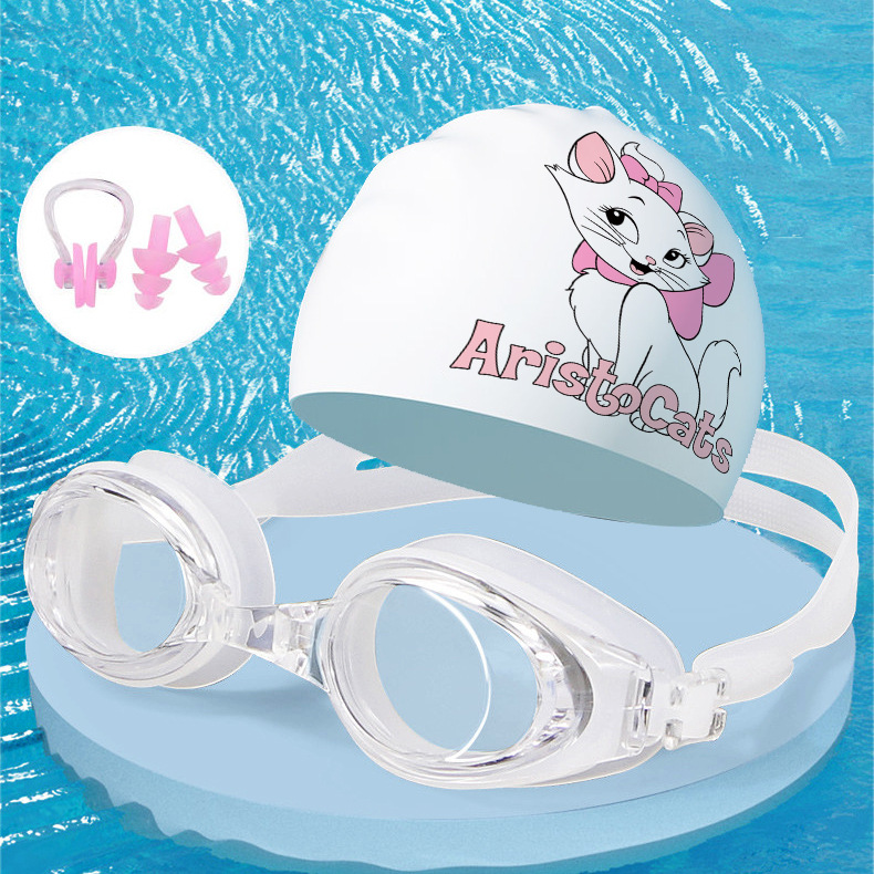 • Mary Cat 방수 수영 모자 + 흰색 수영 고글 + 코 클립 귀마개