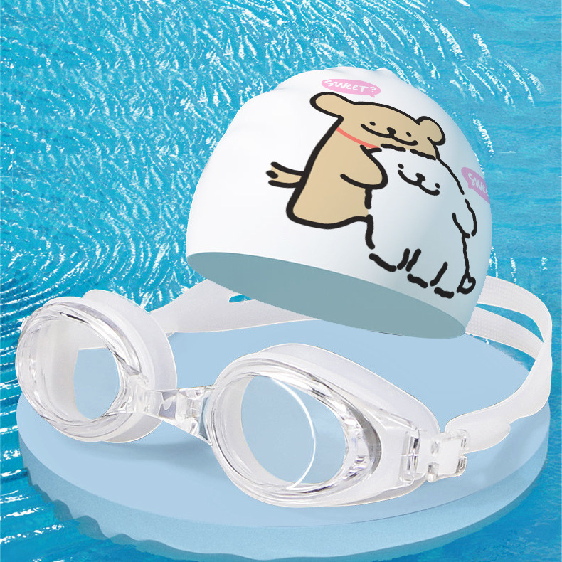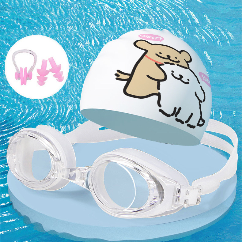 • 계피 개 수영 모자 + 흰색 김서림 방지 수영 고글